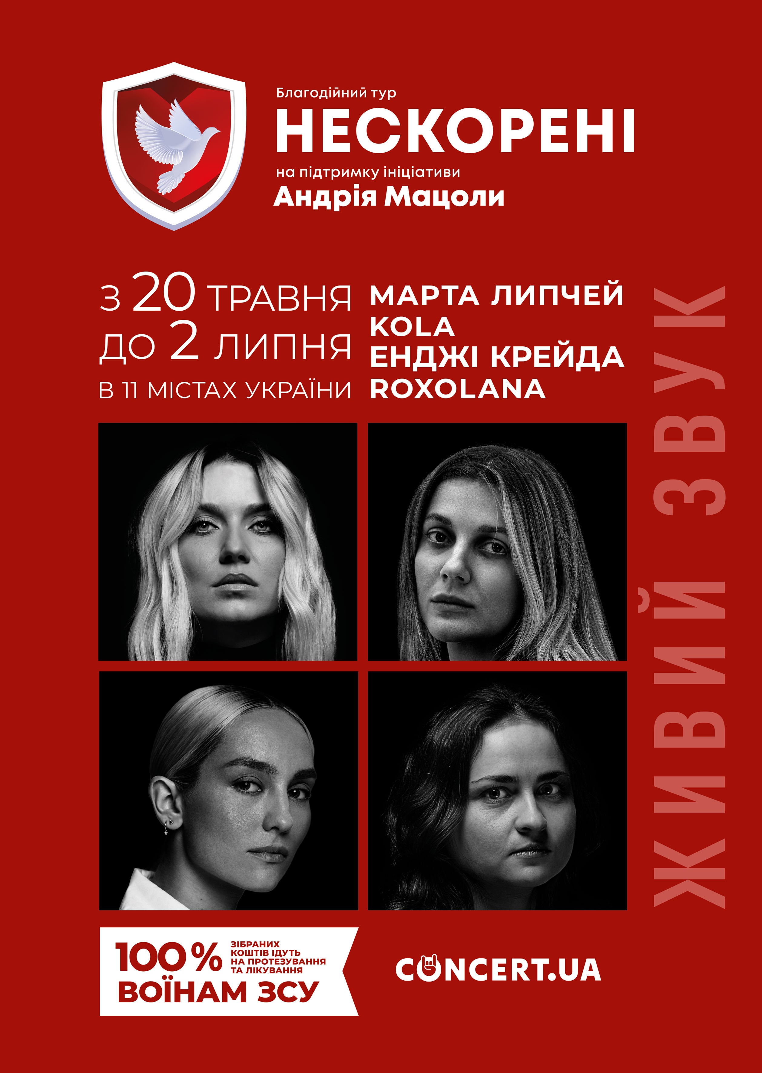 «Нескорені»: в Україні стартує великий благодійний тур за участі Марти Липчей, ROXOLANA, KOLA та «Енджі Крейди»