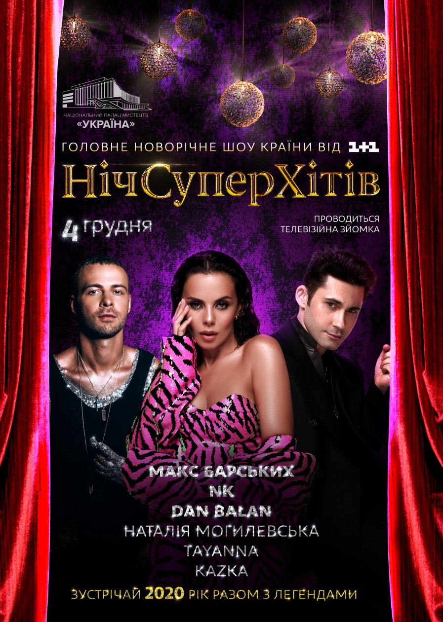Побачити яскраве новорічні шоу «Ніч Cуперхітів» наживо, можна купивши квитки на концерт. Телеверсія буде показана в ефірі телеканалу 1+1 на новорічні свята.
