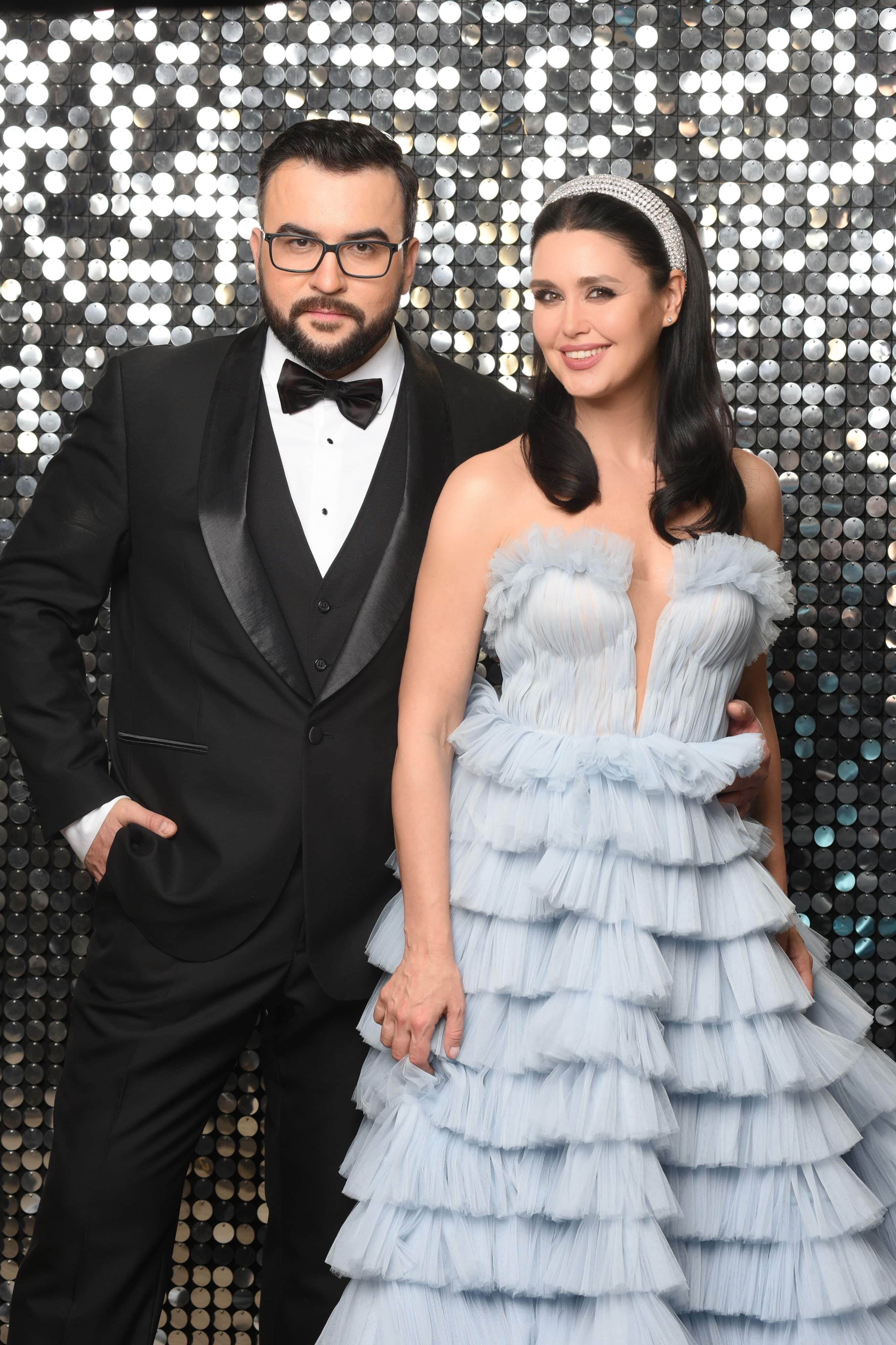 Так, одними з ведучих святкового шоу стали зірки «Сніданку з 1+1» — Людмила Барбір та Руслан Сенічкін. Для проведення новорічного концерту відома телеведуча обрала довгу сукню ніжно-блакитного кольору з глибоким декольте. Доповнив романтичний образ сріблястий обруч. А Руслан Сенічкін був у стильному смокінгу з метеликом.