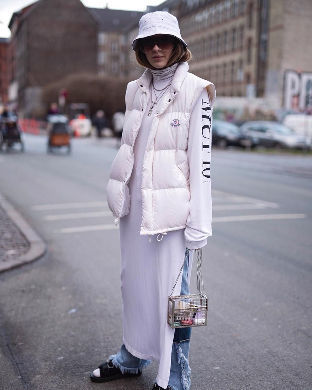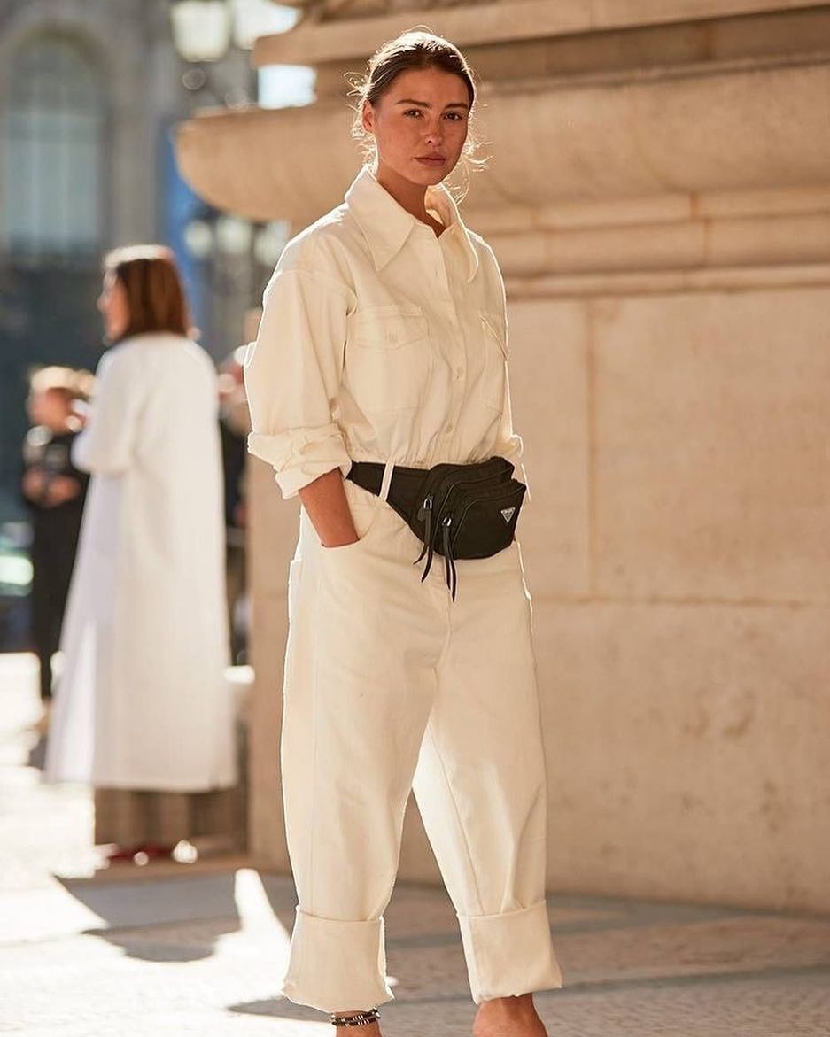Монохромний білий лук зробить вас ніжним весняним ангелом. Витончений білий сарафан, лаконічні туфлі-човники й улюблена сумка - у цьому образі нічого зайвого, тож ви почуватиметесь легкою й невимушеною.
