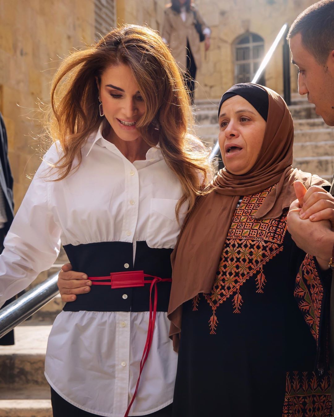 Подібний образ ми спостерігали й раніше, під час візиту Ранії до йорданського міста Ес-Салт. Для виходу королева вподобала сорочку з чорним корсетом і червоною шкіряною оздобою.