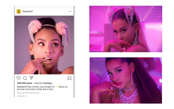 Річ у тім, що популярний бренд без будь-якого узгодження з поп-дівою скопіював стилістику її кліпу на пісню 7 Rings. Лише поглянь: