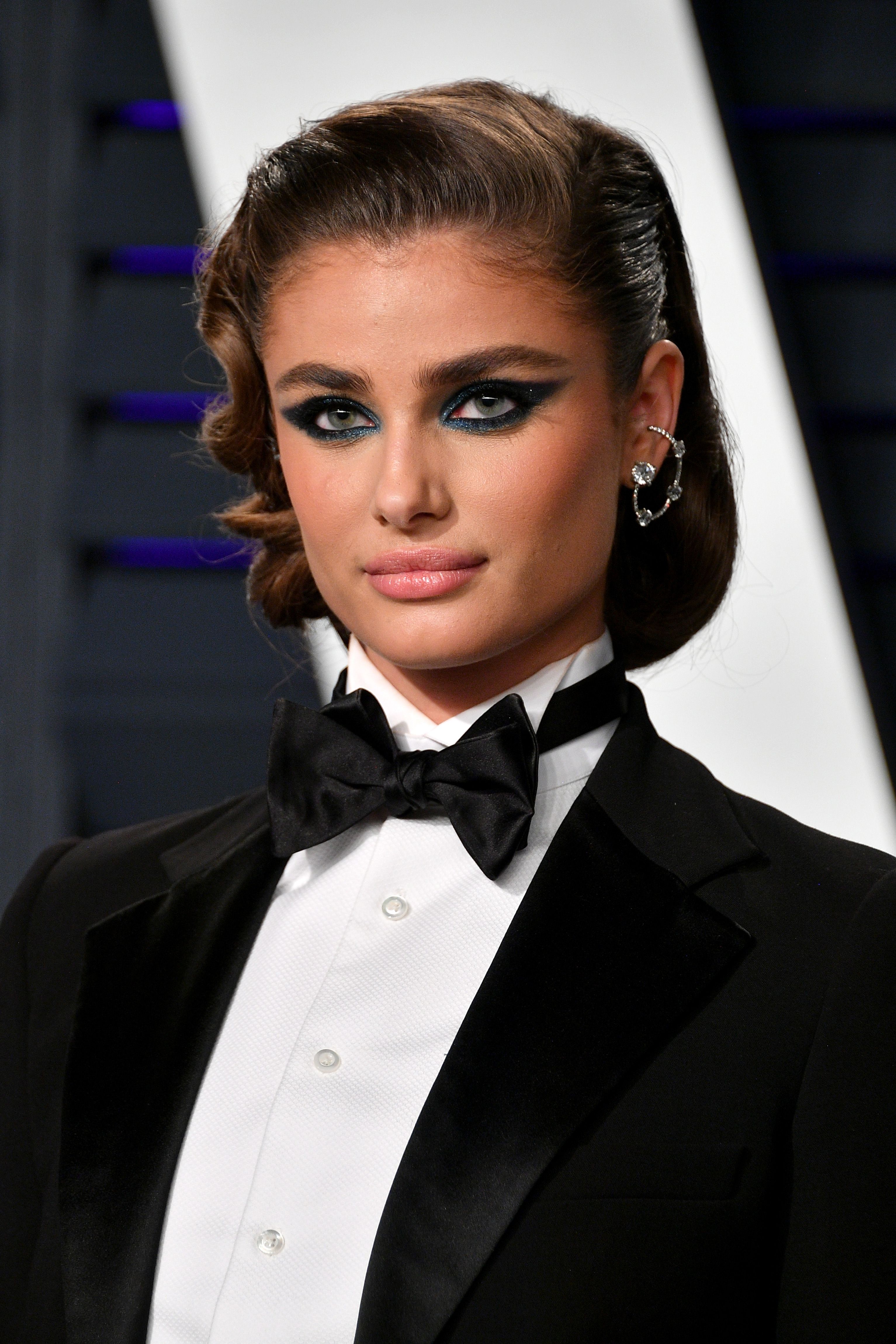 Як щодо невеличкої провокації? Тейлор Хілл вирішила поекспериментувати – вона одягнула класичний смокінг та елегантні туфлі-човники. Зірка доповнила образ метеликом, цікавою моносережкою та яскравим макіяжем.