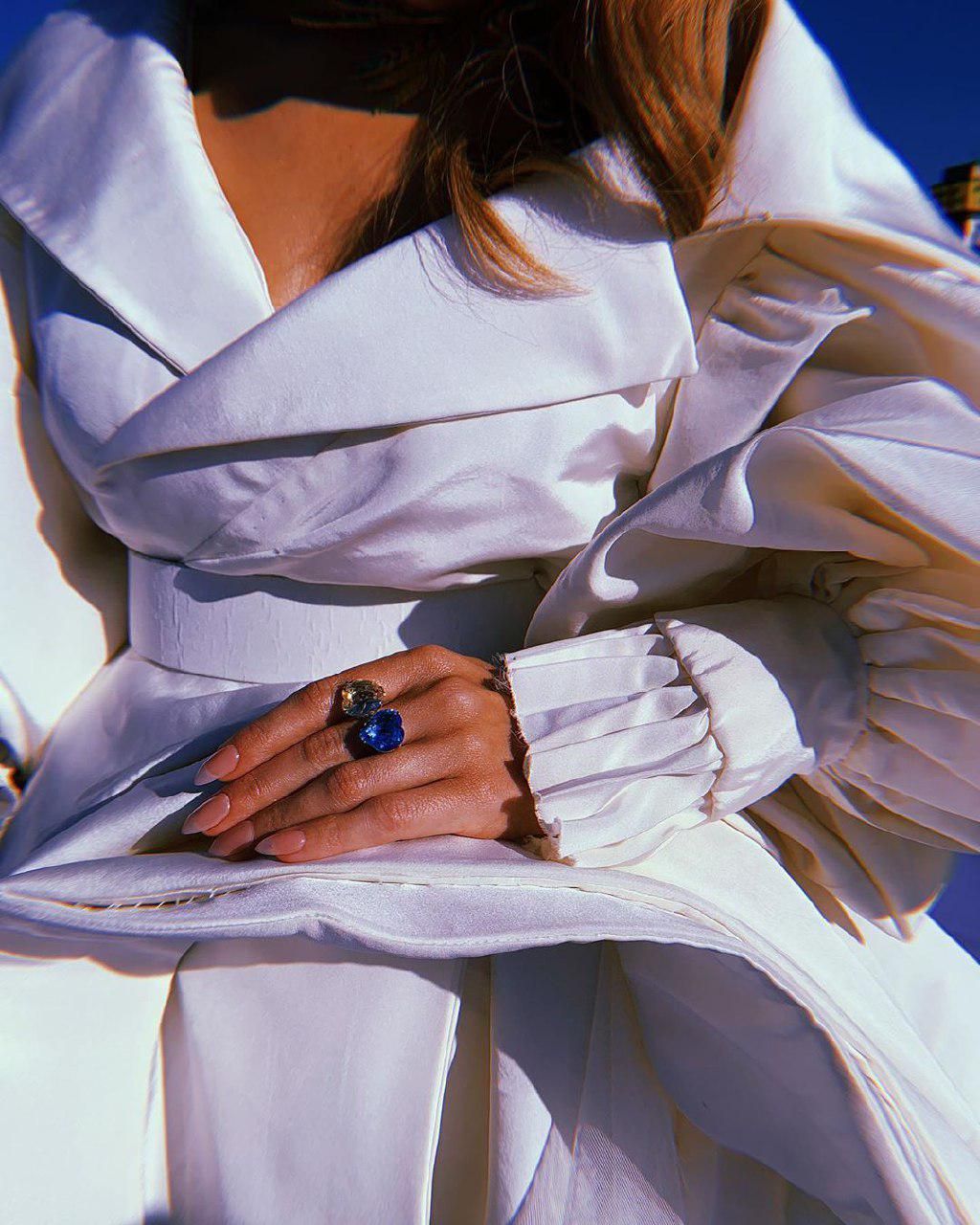 Коштовне каміння двох символічних кольорів можна було побачити й на каблучці співачки.