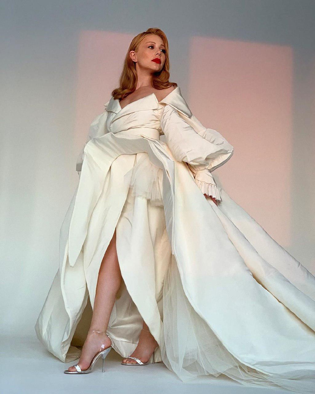 Для свого виступу Тіна Кароль обрала розкішний образ — пишну білосніжну сукню від Ashi Studio, яка підкреслила янгольську красу виконавиці.