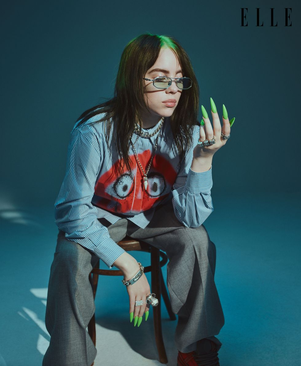 Зазначимо, для фотосесії Elle Біллі обрала оригінальні образи у своєму стилі. Але особливо привернули увагу трендове пофарбування волосся та неоновий манікюр.