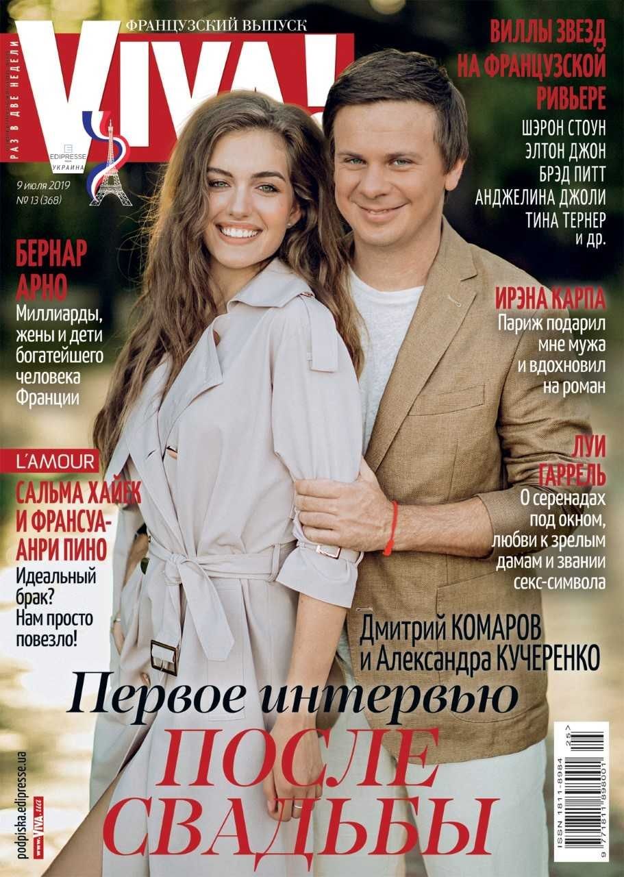 Відомий 36-річний український ведучий програми «Світ навиворіт» Дмитро Комаров разом із 21-річною дружиною, телеведучою, Міс-Україна 2016 Олександрою Кучеренко знялись у романтичній фотосесії, яку влаштували на заході сонця біля Київського моря.