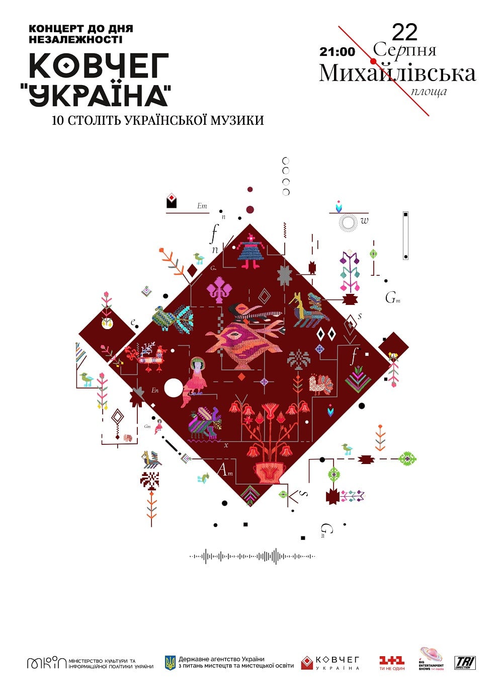 На Михайлівській площі прозвучать понад 20 шедеврів української музичної спадщини, які отримають нове, сучасне звучання. В шоу візьмуть участь Святослав Вакарчук, Джамала, Alina Pash, Юлія Саніна, Катерина Кухар, Олександр Стоянов та інші. Окрім того, спеціально до цієї події Сергій Жадан та гурт «ДахаБраха» написали пісню – легенду про Ноя на український лад.