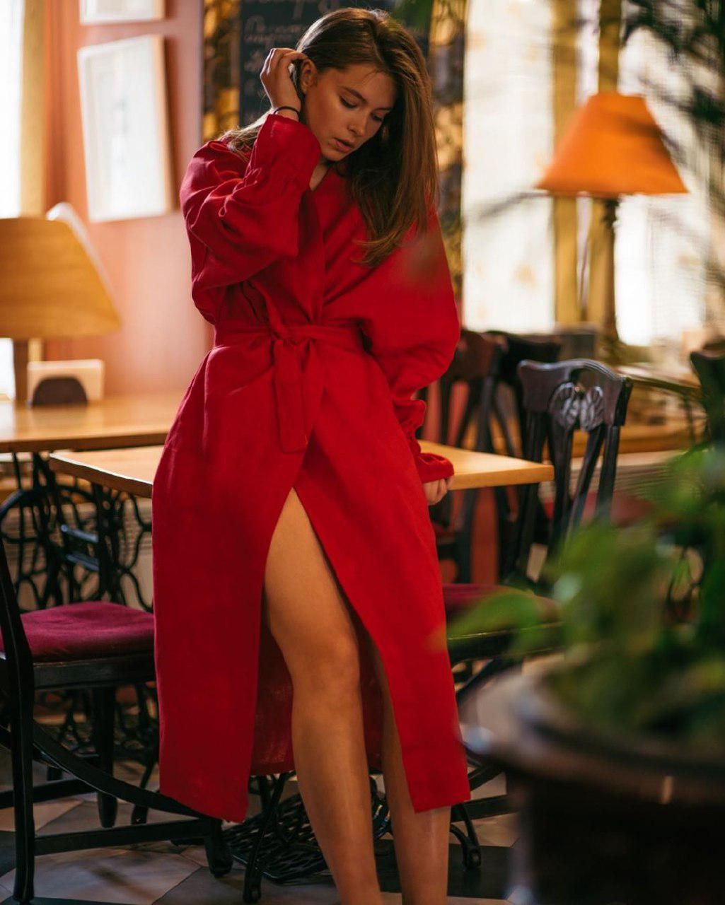 Поки акторка і зірка студії «Квартал 95» Олена Кравець опановує танцювальні рухи на паркеті, її 16-річна донька Маша будує модельну кар’єру. Днями вона похизувалася результатом нової фотосесії, для якої приміряла стильну червону сукню-халат.