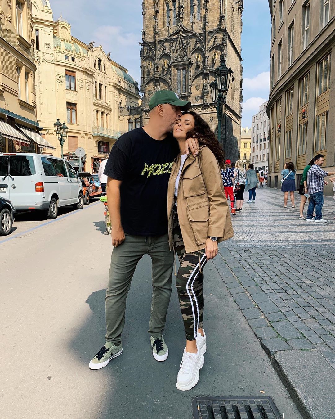 Так, вирушивши на романтичні канікули до Праги, Настя Каменських прихопила з собою military look, який впевнено можна вдягнути на кожен день. Співачка обрала спортивні штани з камуфляжним візерунком та білими смужками збоку, а доповнила його пісочним піджаком з величезними кишенями. Завершили образ білосніжні ugly shoes.