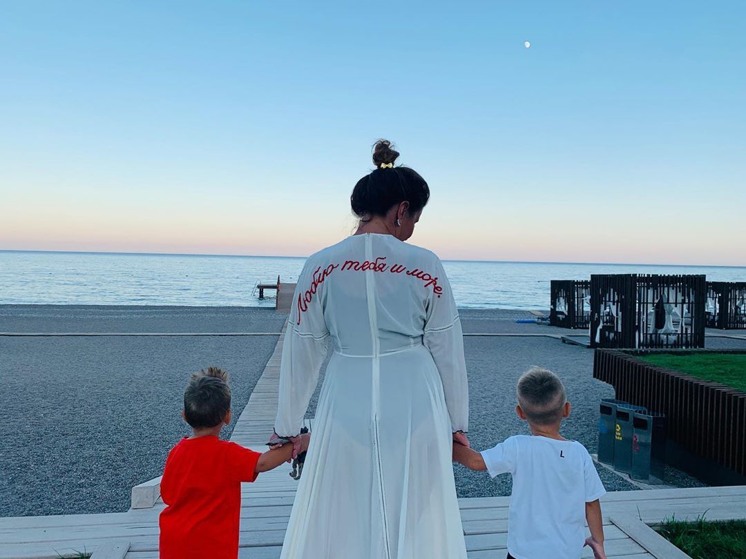 На фото кохана MONATIKа демонструє соковиту фігуру у стильному ретро-купальнику кольору хакі. Також Ірина оприлюднила миле фото з дітьми – і воно дуже схоже на зворушливий кадр Дмитра із синами.