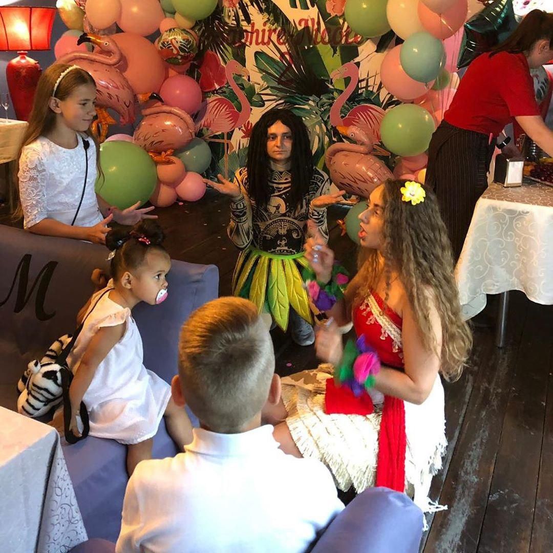 Співачка розповіла, що на вході їх зустрічали кумедні аніматори біля красивої тропічної фотозони з букетами із різнокольорових повітряних куль у вигляді тварин і райських птахів.
