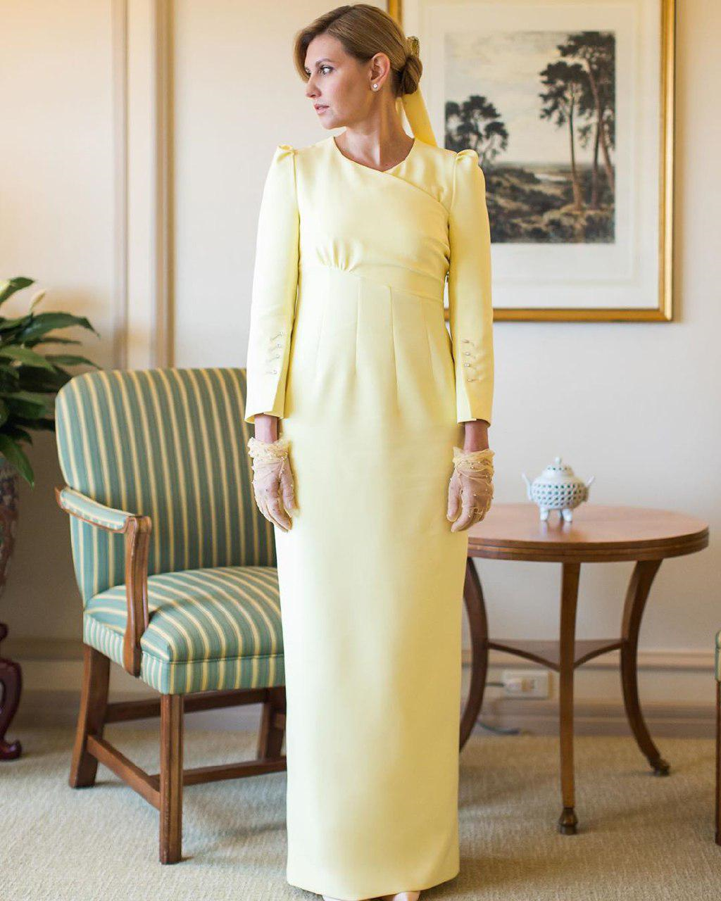Під час свого візиту до Японії перша леді Олена Зеленська продемонструвала вишуканий ніжно-лимонний образ. Сукню створив український дизайнер Іван Фролов — спеціально для церемонії інтронізації імператора Нарухіто.