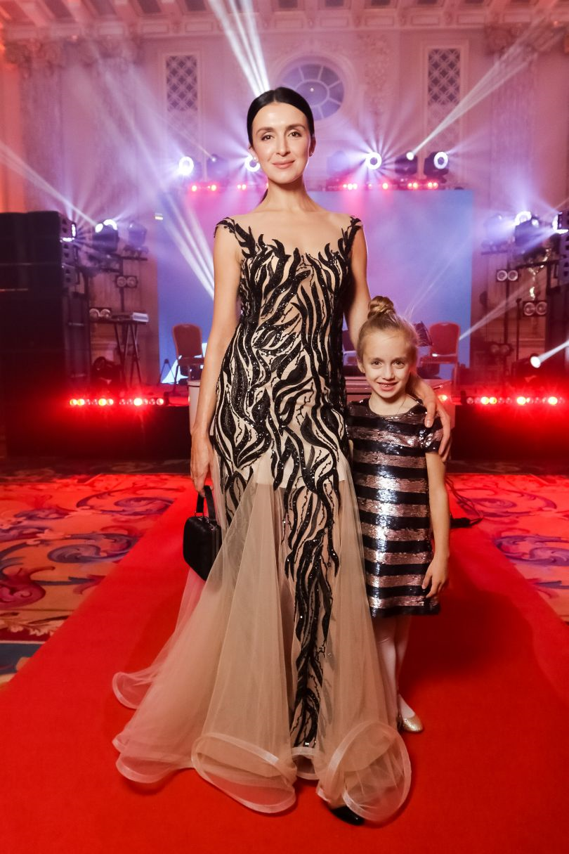Так, зірка «Сніданку з 1+1» Валентина Хамайко з'явилася на балу с чоловіком та донькою. Образи дівчинки та мами дуже пасували одне до одного — золотаво-чорні сукні з паєтками.