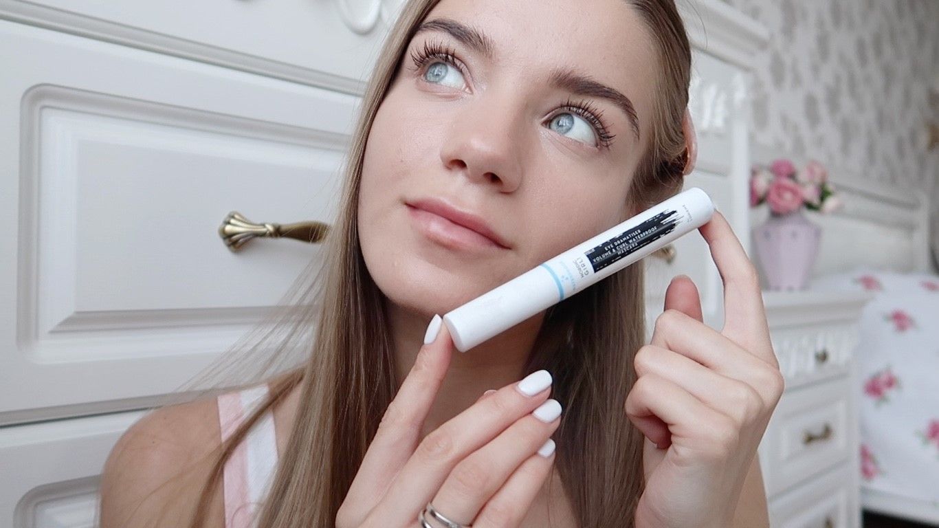 5. Туш із густою кремовою формулою створює інтенсивний об’єм і надає віям кокетливого вигину. Зручна вигнута щіточка ретельно розподіляє туш і підкручує вії, фіксуючи вигин на весь день. Насичений чорний пігмент додає погляду глибини і виразності.