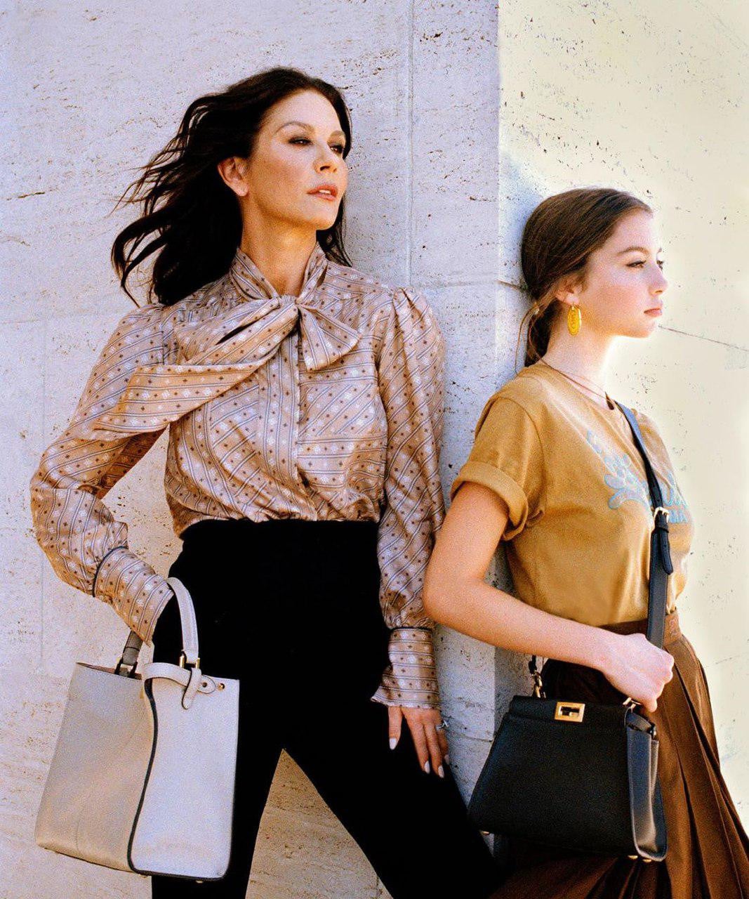 50-річна британська акторка Кетрін Зета-Джонс не втомлюється хизуватися своєю красунею-донькою — 16-річною Керіс Дуглас. Нещодавно дівчата знялись у стильній фотосесії для Vanity Fair – і зачарували всіх прихильниць глянцю. Кетрін та Керіс вирішили ще раз потішити фанів і постали у нових образах для рекламної кампанії бренду Fendi. Знімками та відео акторка поділилася на своїй сторінці в Instagram.