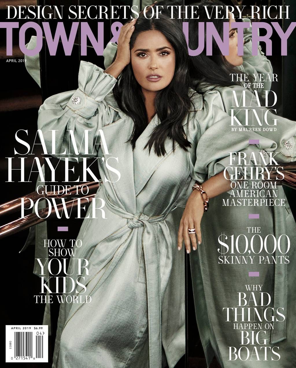 Окрім інтерв’ю на сторінках Town&Country з’явилась фотосесія Сальми Гаєк. На обкладинці акторка позує у довгій сукні м’ятного кольору.
