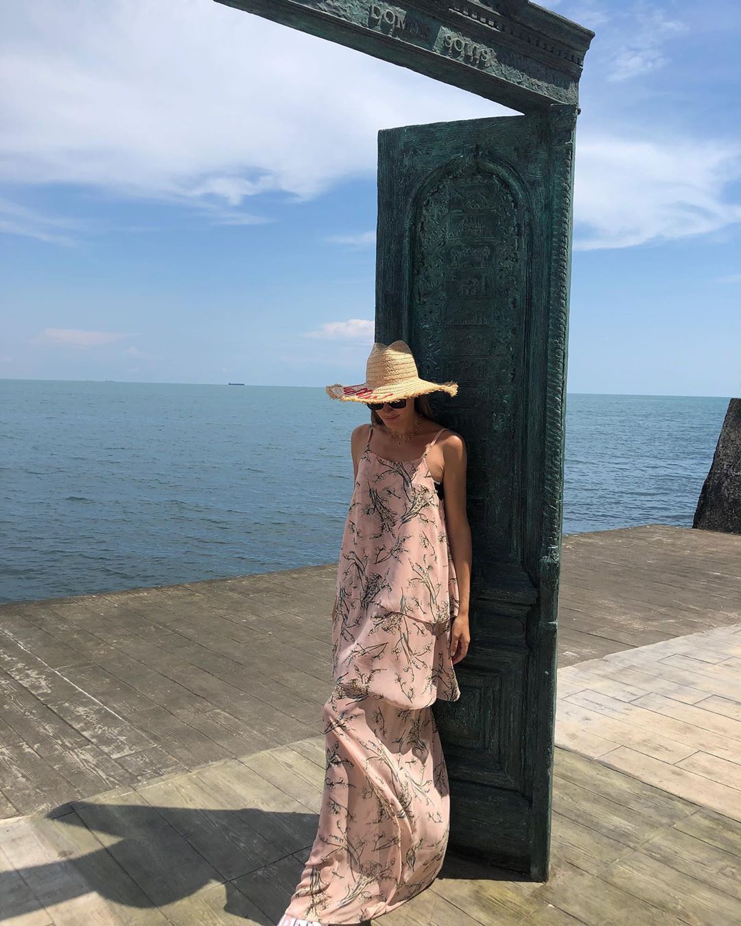 До речі, Катя Осадча демонструє ідеальний пляжний лук: легка максі-сукня з квітковим візерунком та великий солом’яний капелюх.