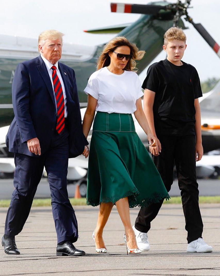 Як виявилося, перша леді США — не виняток. У її гардеробі можна знайти сукні на всі випадки життя, але днями Меланія Трамп спробувала дещо урізноманітнити свій стиль. Дружина президента Америки вдягнула лаконічну білу футболку з довгою зеленою спідницею — усе, як радить Вікторія Бекхем. У невимушеному образі Меланія поверталася з відпочинку.