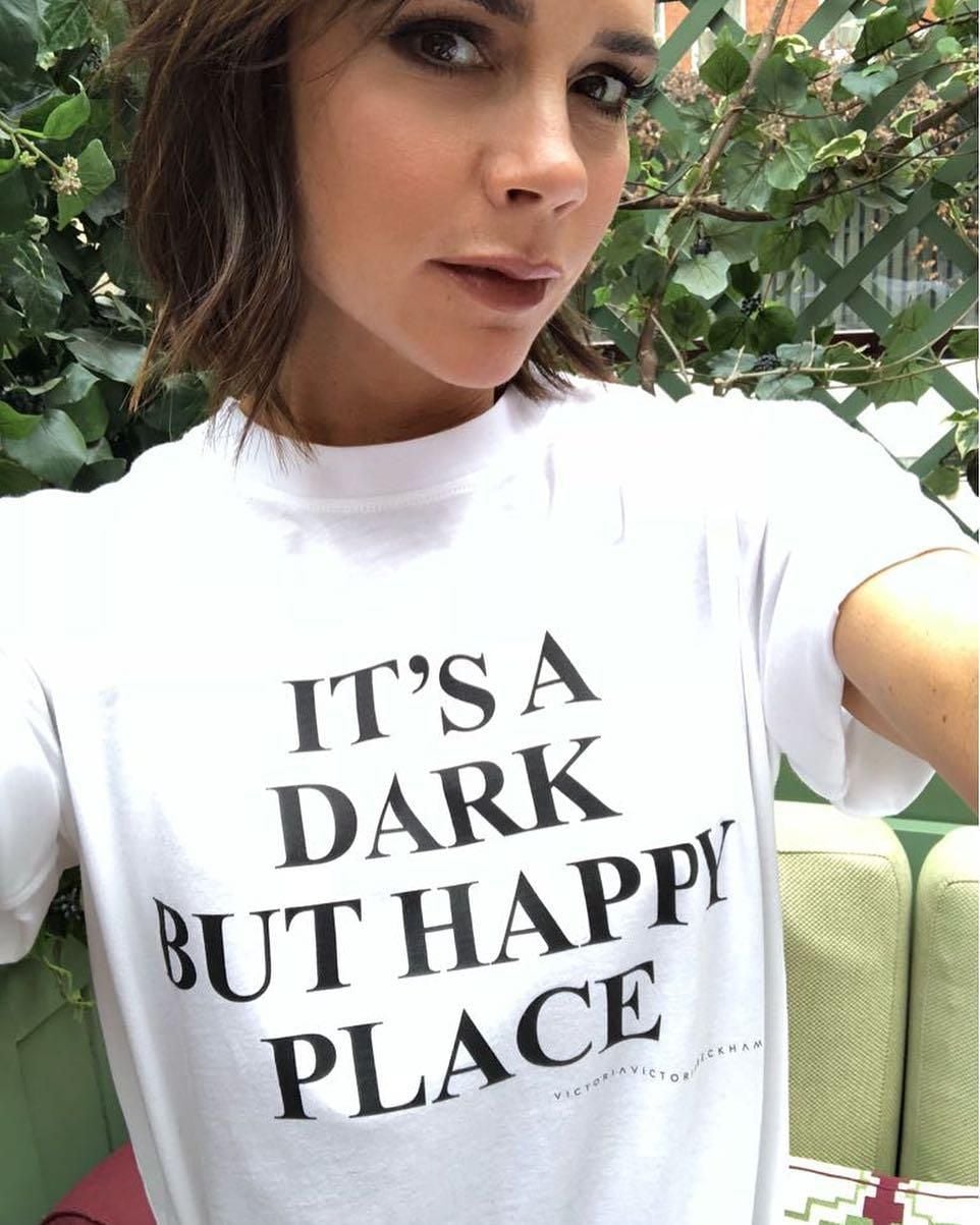 Ймовірно, вона не лише дослухалася порад Бекхем, а й влаштувала шопінг в її магазині. Адже чи не у всіх колекціях дизайнерки можна знайти як мінімалістичну білу футболку, так і білу футболку з принтом — кожного сезону з новим.