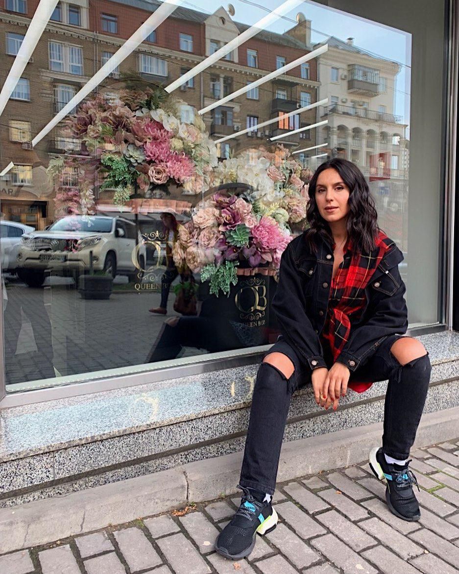Днями Джамала продемонструвала трендове вбрання — картата червоно-чорна сорочка і рвані джинси у поєднанні з курткою із деніму.