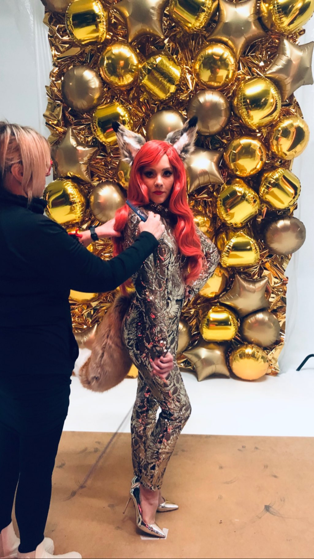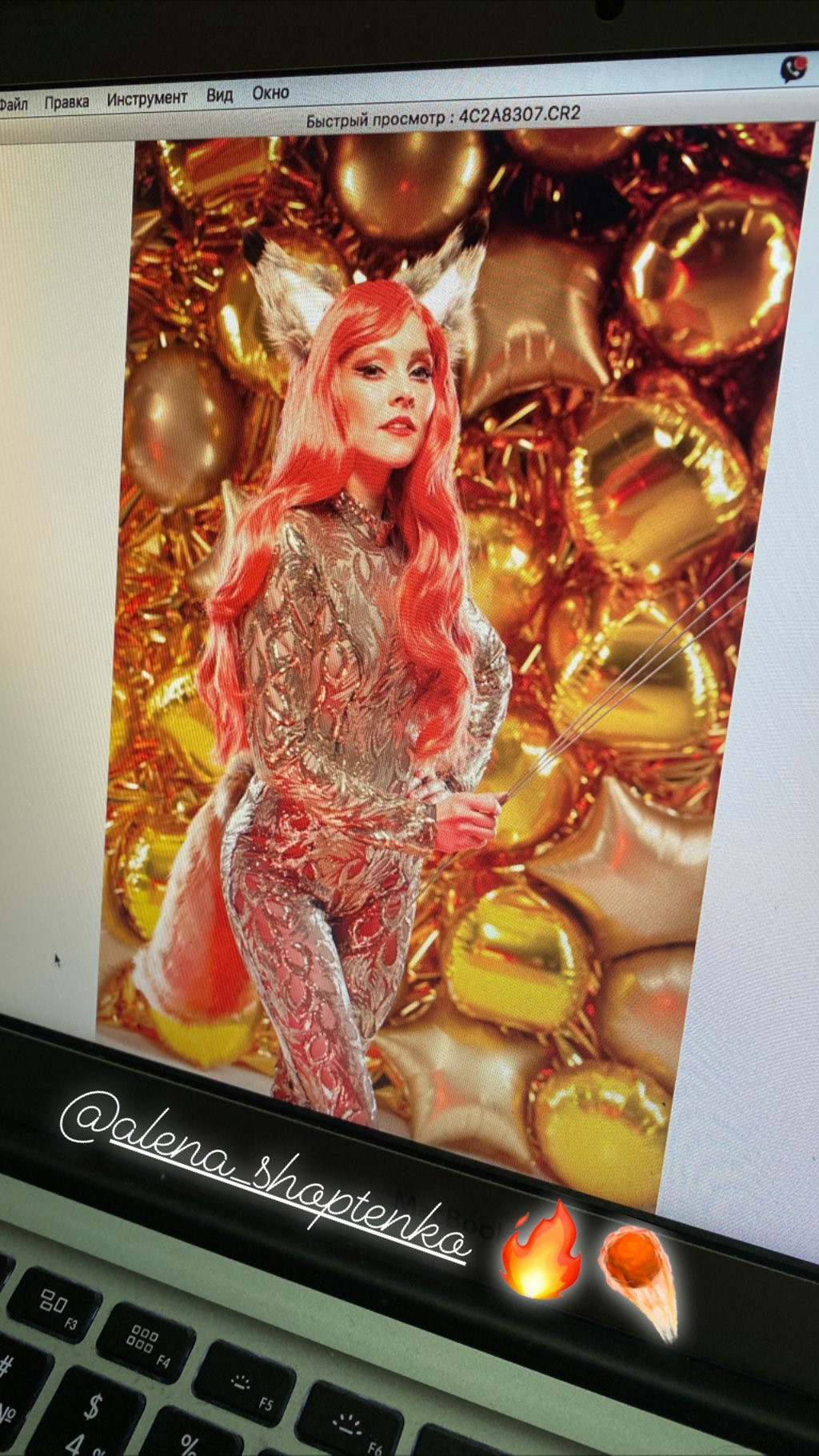 За словами Олени, новорічний образ розкрив її альтер его — лисичка. Заради перевтілення танцівниця приміряла руду перуку, пухнасті вушка та хвостик. У шубу з лисячого хутра Шоптенко, на щастя, не вбралася — підкреслила фігуру золотистим комбінезоном з паєтками.