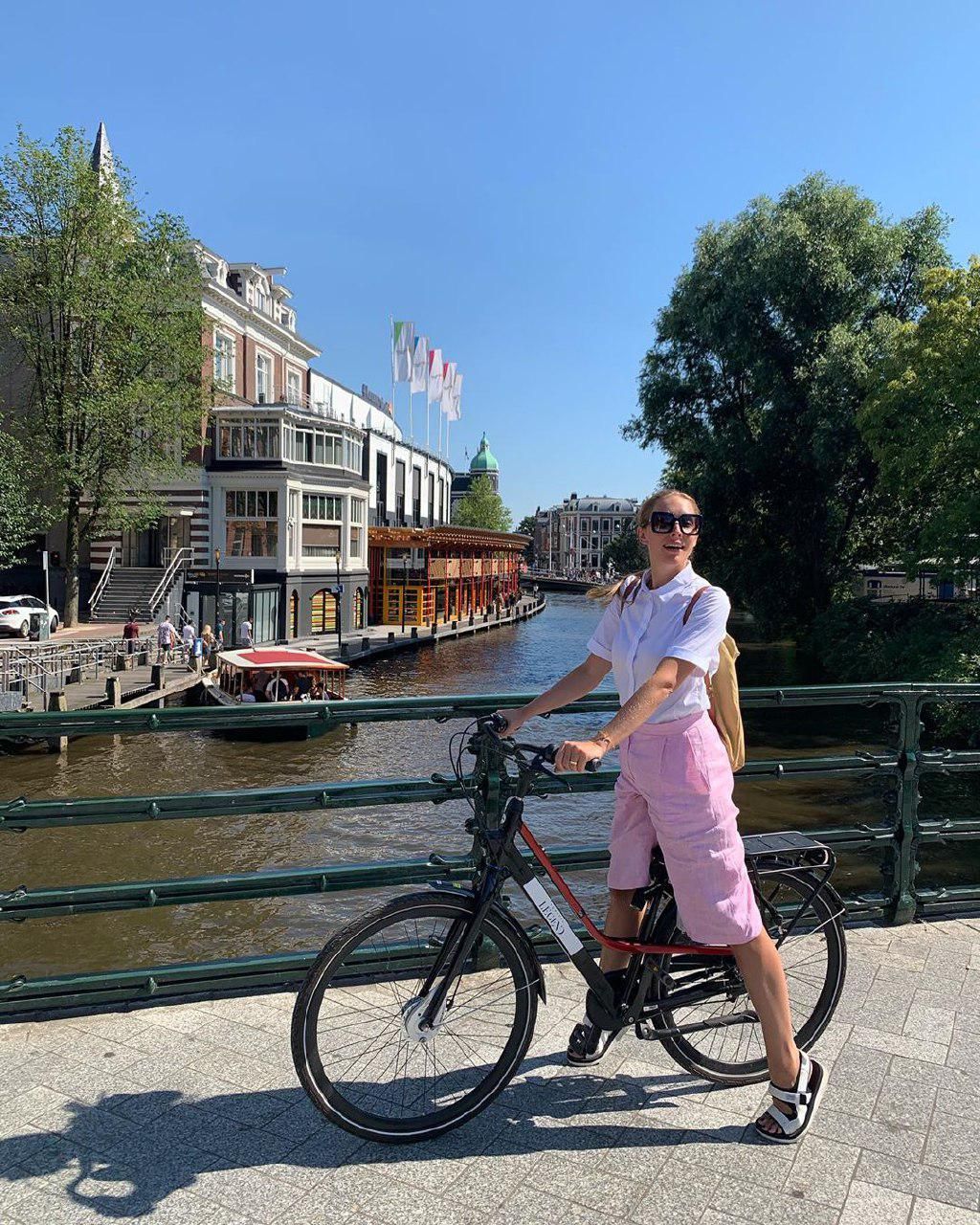 Цього липня Осадчій та її чоловіку Юрію Горбунову вдалося спланувати спільну подорож і провести кілька днів у Амстердамі. Подружжя вже продемонструвало, як романтично катається в човнику каналами. А тепер закохані вирішили дослідити місто в інший спосіб — на велосипеді.