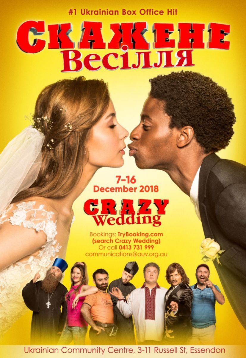 Найкасовішу українську комедію «Скажене весілля» зможуть подивитися жителі Мельбурна та Брисбена. Комерційні покази відбудуться в кінотеатрах «Українського культурного центру» Австралії з 7 грудня. Як повідомляє прес-служба Держкіно, комедія демонструватиметься українською мовою з англійськими субтитрами.