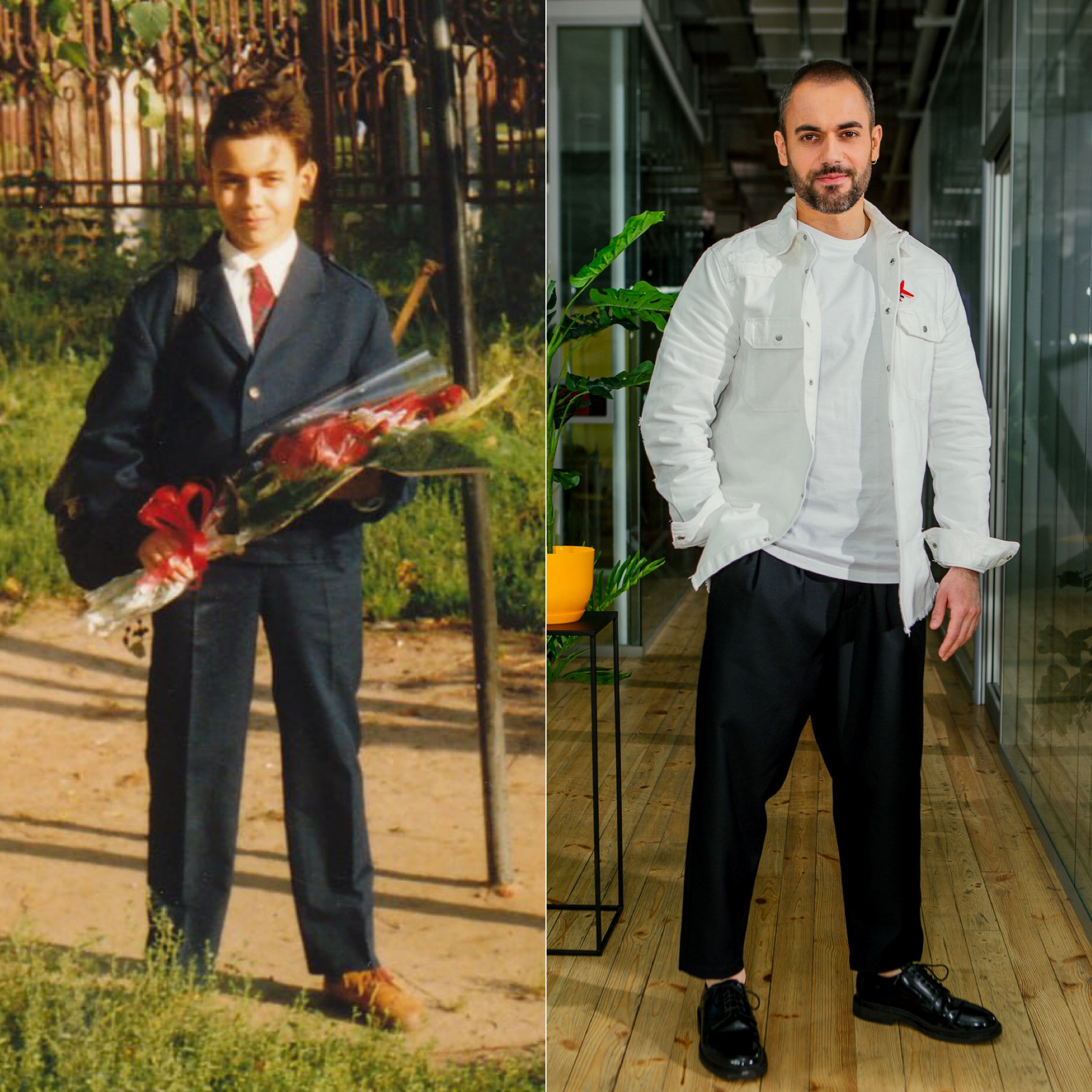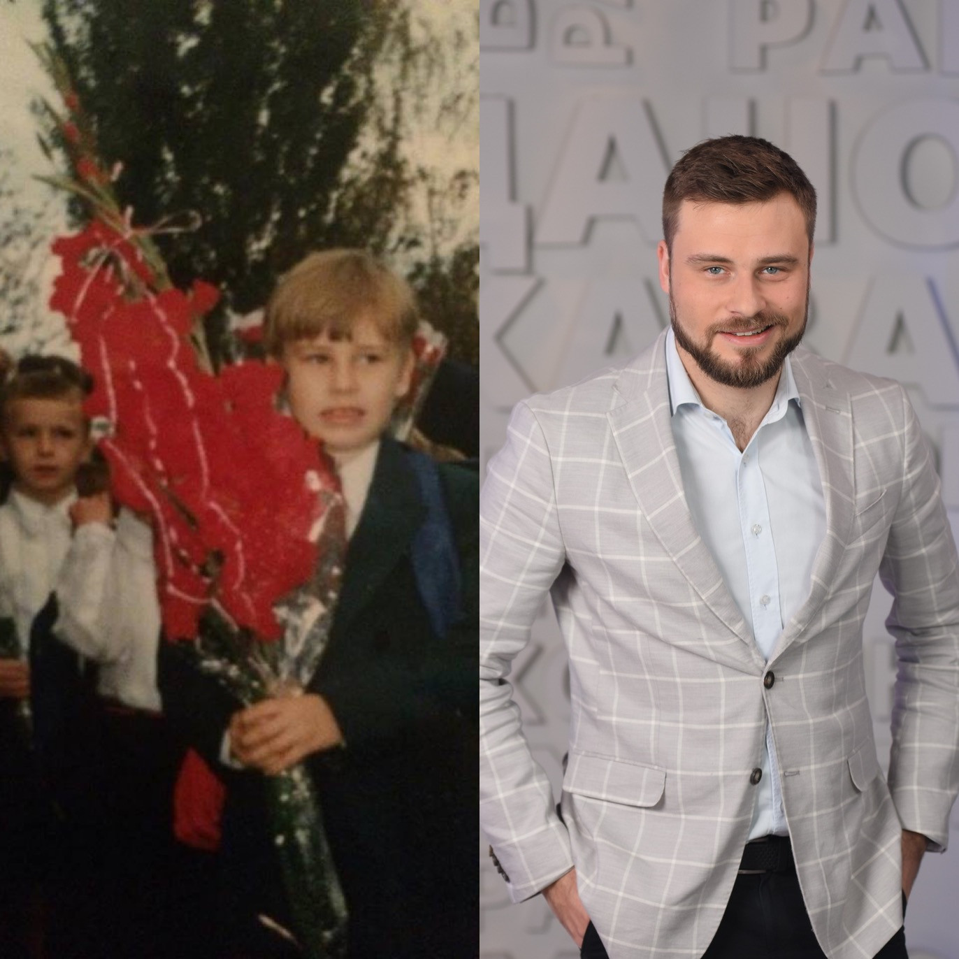 Я дуже добре пам’ятаю своє перше вересня. Якраз тоді ввели гривню, а в мене батьки працювали у сфері товарів, послуг. Для них це був пекельний період. А тут ще я йду в перший клас. В мене були величезні довгі гладіолуси для вчительки, і великий портфель – майже як я. Пам’ятаю, що намагався виглядати своїх батьків, які змогли зазирнути бодай на якусь хвилинку, щоб підтримати. Я заплутався у своєму рюкзаку і гладіолусах... і ледь не впав! Рядок з дітей ледь не впав разом зі мною. Це був комічний епізод. Думаю, якби в ті часи вже існував тікток, ми б, безсумнівно, стали його героями!