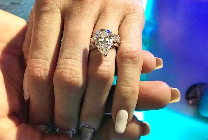 Елль пішла під вінець у розкішній приталеній сукні зі шлейфом. А на руці нареченої тепер сяє каблучка з величезним діамантом.