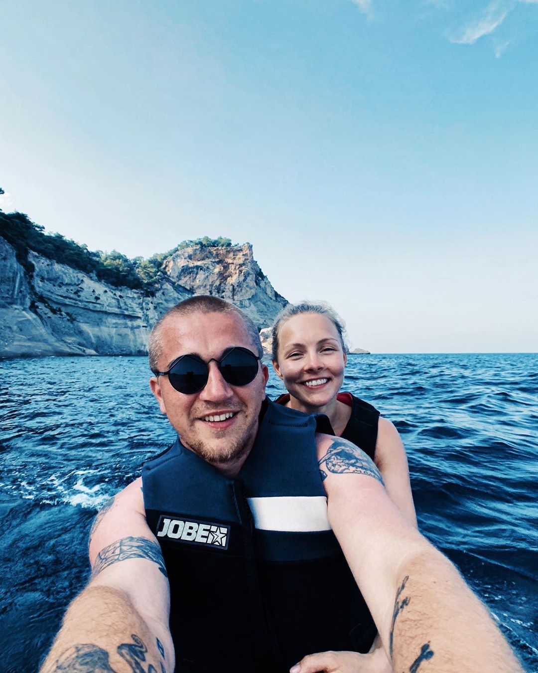 Подружжя вирішило розважитися і покататися на водному скутері. Морська поїздка не обійшлася без пригод. Про це Олена написала у коментарі до світлини.