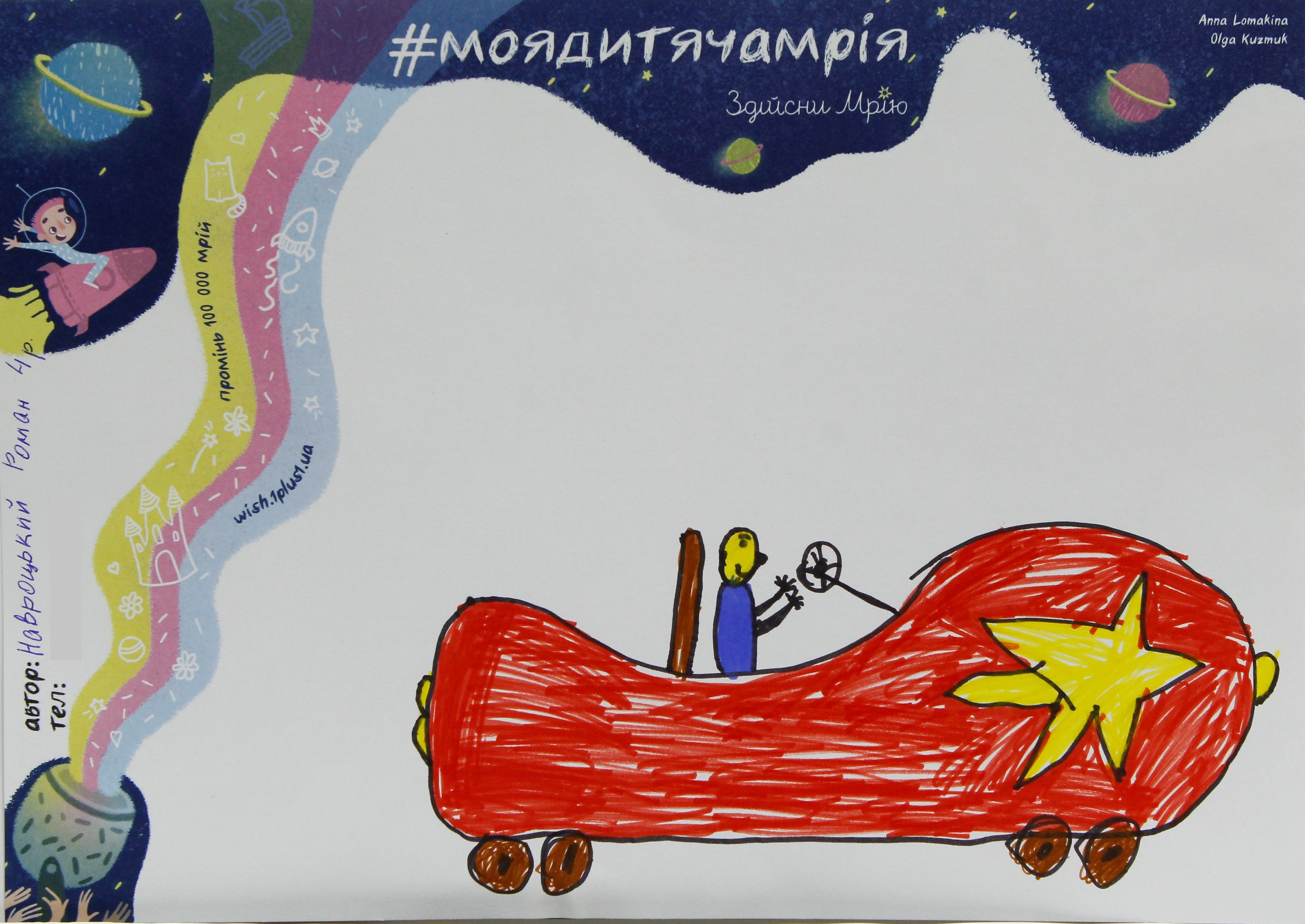Свою мрію Ромчик намалював для арт-марафону #моядитячамрія восени у Львові, коли там проходив лікування від раку крові. Тоді до нього завітала команда проекту Здійсни мрію і арт-фея Аня Ломакіна.