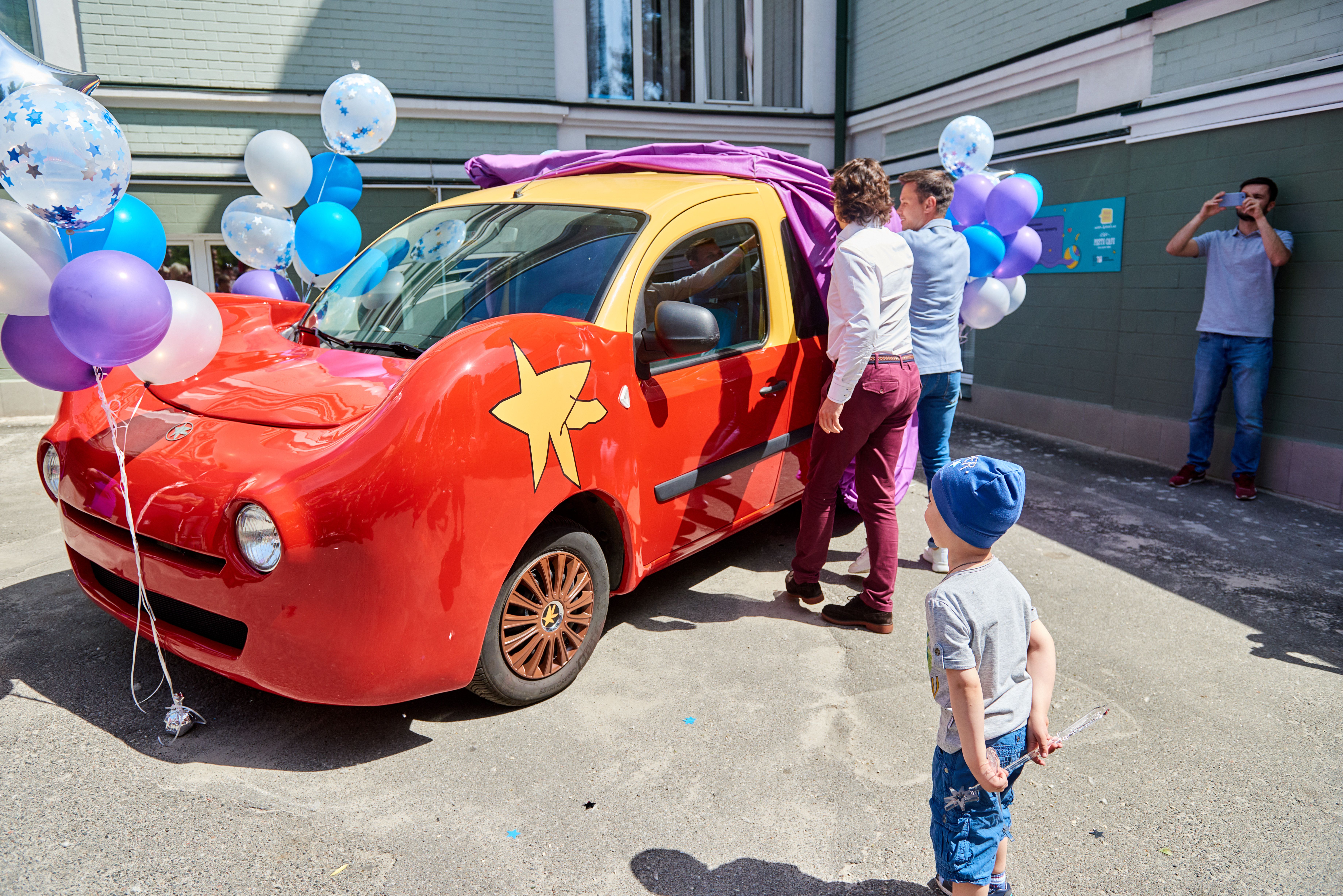 Хлопчику презентували реальний електрокар Супермобіль – точно такий, як він зобразив на своєму малюнку – червоний, зі спортивними формами й чудернацькою жовтою зіркою, а ще міні-версію машини – її Рома забрав додому і буде їздити на ній вулицями.