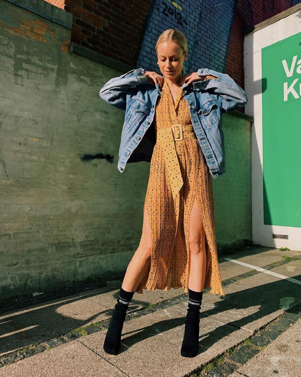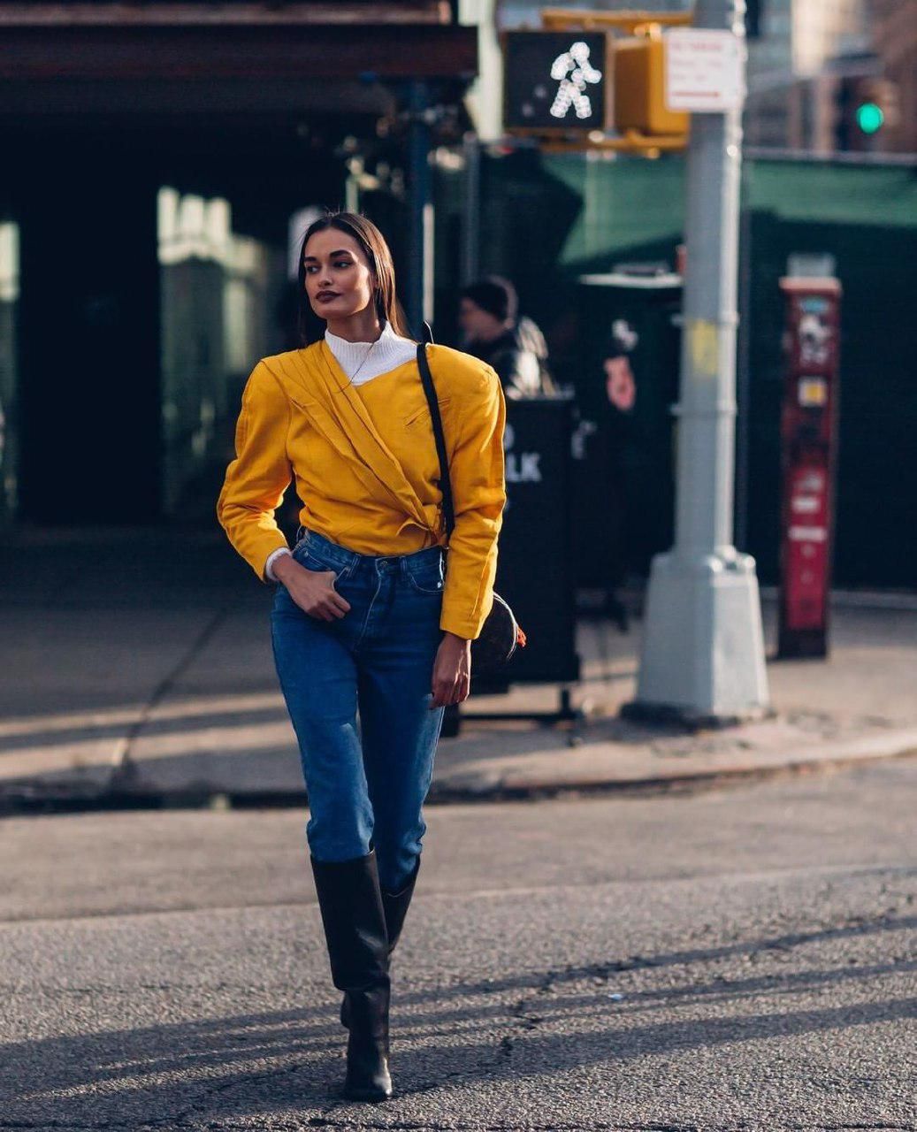 Блакитні брюки або спідниця знайдуться не в кожному гардеробі, але джинси — стовідсотково є в усїх. Сюди ж варто віднести й інші речі з деніму, які складуть гармонійний тандем із жовтим — куртки, сорочки та комбінезони. Ще один хороший спосіб розкуштувати мікс двох кольорів.