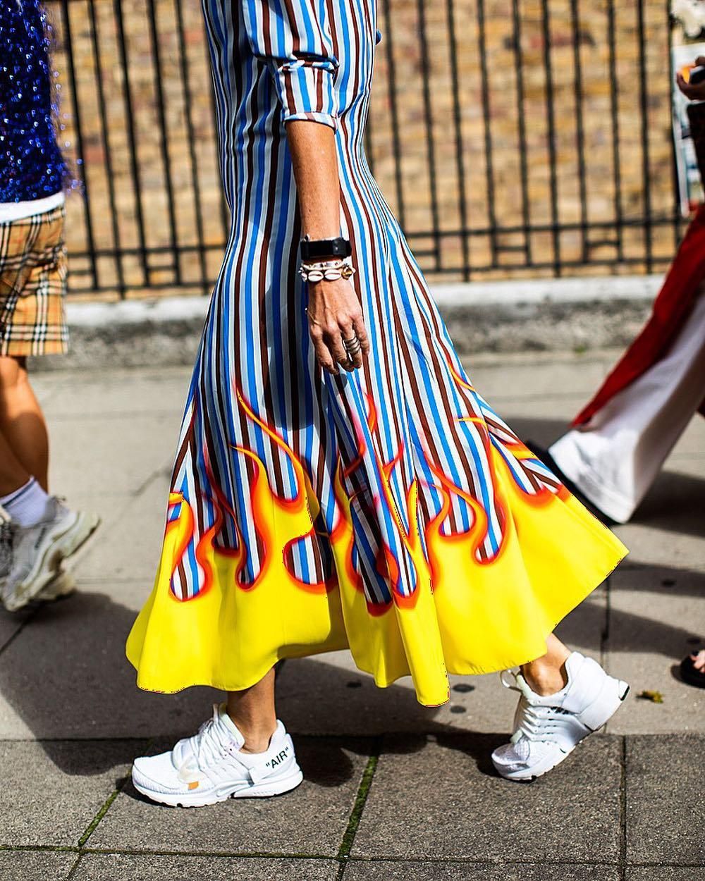 Варіант для найсміливіших (і наймодніших). Якщо змішувати несхожі насичені кольори для тебе взагалі не проблема, додай яскравості за допомогою малюнка. Мова не тільки про принти, які об'єднують в собі два кольори, але й про ті, що доповнюють кожен із них окремо. Це може бути і щось класичне (клітинка, смужка, горох), і доволі оригінальне (квіти, леопард, складні малюнки).