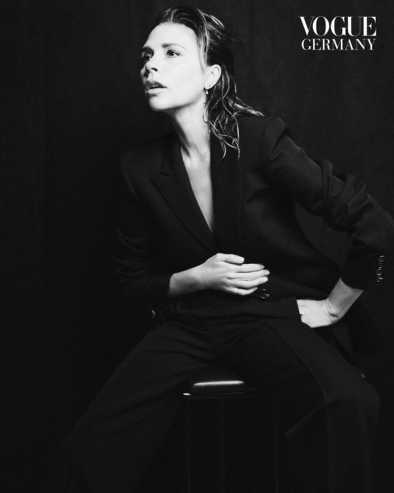 Відома британська дизайнерка Вікторія Бекхем прикрасила серпневу обкладинку глянцю Vogue Deutsch. На фото колишня учасниця популярного гурту Spice Girls у досить пікантному образі – з оголеною спиною та піджаком у руках.