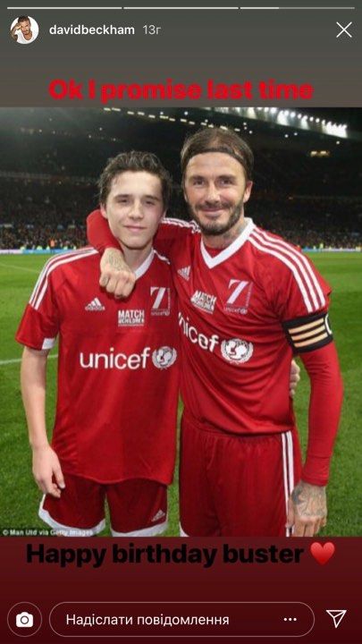 «20 років тому цей маленький хлопчик увійшов в наше життя. Ми не могли б бути більш гордими за людину, якою він став, і ту пристрасть, яку має до всього, чим займається. Ми любимо тебе! З днем народження, великий хлопчику», - написав привітання Девід.