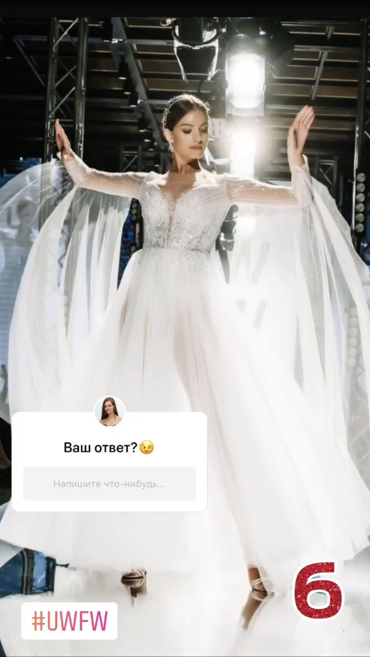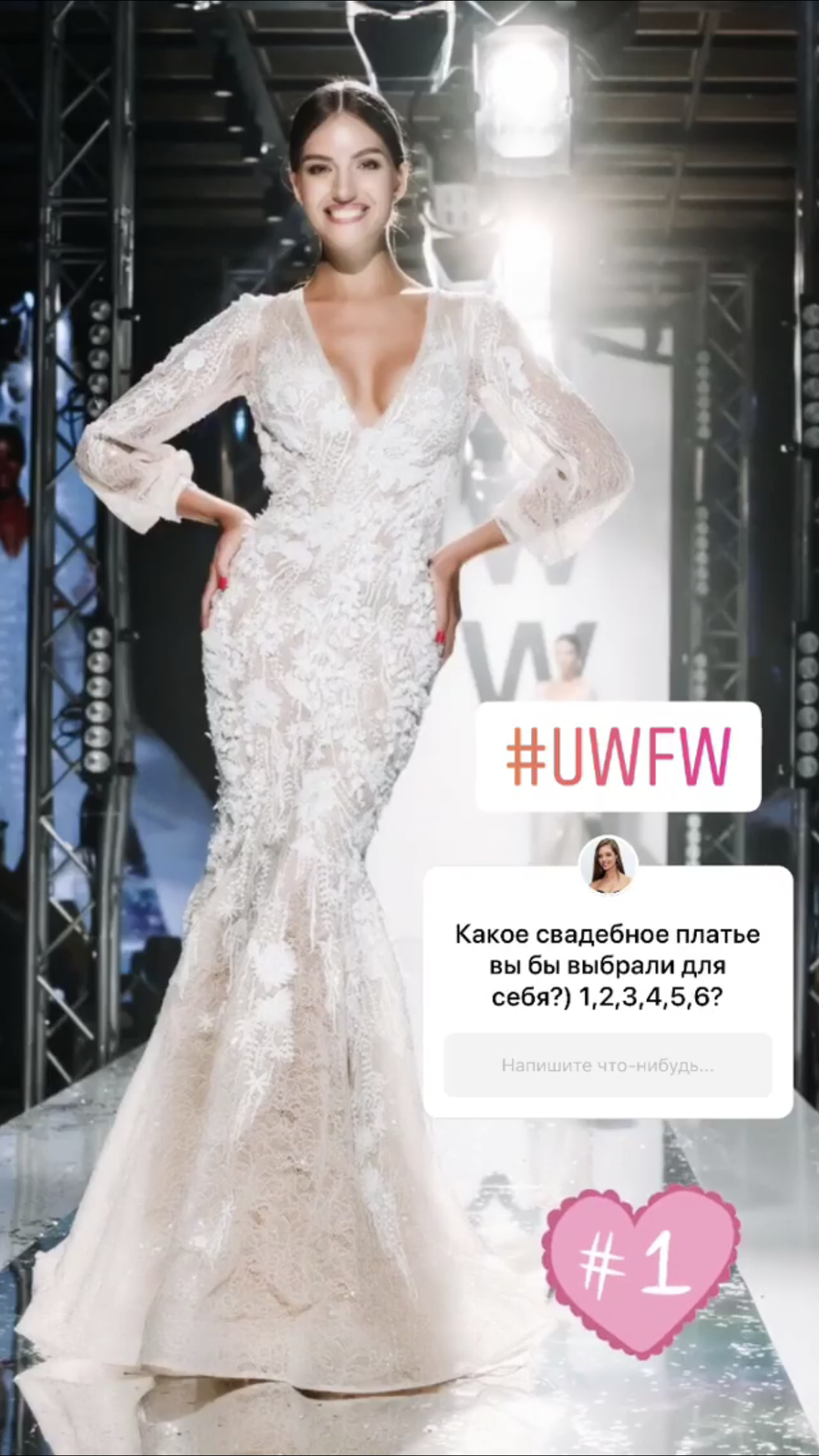 Не лякайся, милий, це лише показ весільних суконь під час UWFW, – пожартувала модель.