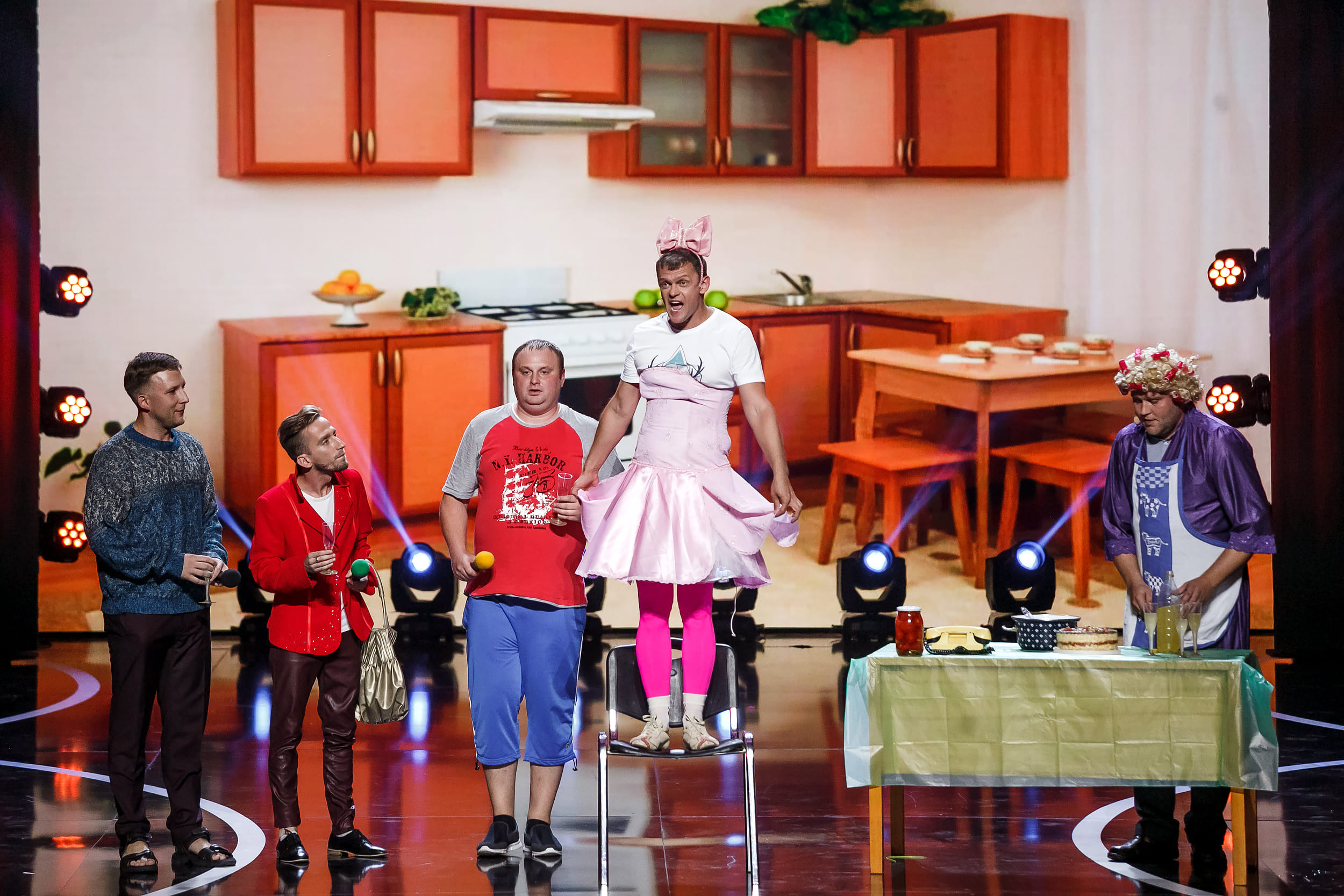 До цього етапу «Ліги Сміху» дійшли 6 команд. У першій грі зіграють тандеми: «Моя провінція», тренером якої є Юрій Ткач, підопічні Гаріка Бірчі команда «30+», а також «Дніпро» і тренер-джокер, яким в цьому ефірі став співак і ведучий Володимир Дантес. Раніше на фестивалі хлопців відібрала Олена Кравець, яка була непостійним тренером. Тепер на кожному етапі гри у команди новий наставник.