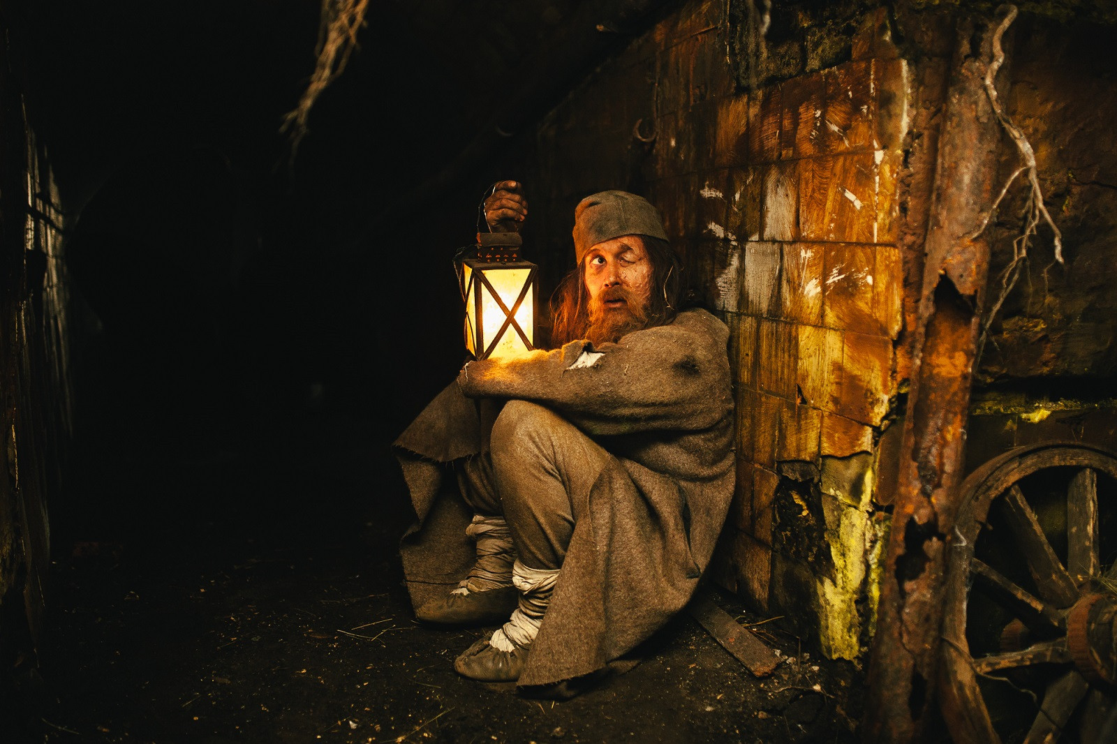 Певец и актер Сергей Бабкин предстанет в амплуа вечного гайдамаки Варфоломея, который живет в подземельях и ведет аскетический образ жизни. И если не знать, кто сыграл мистического старца, нечего и гадать, кого так мастерски загримировали.