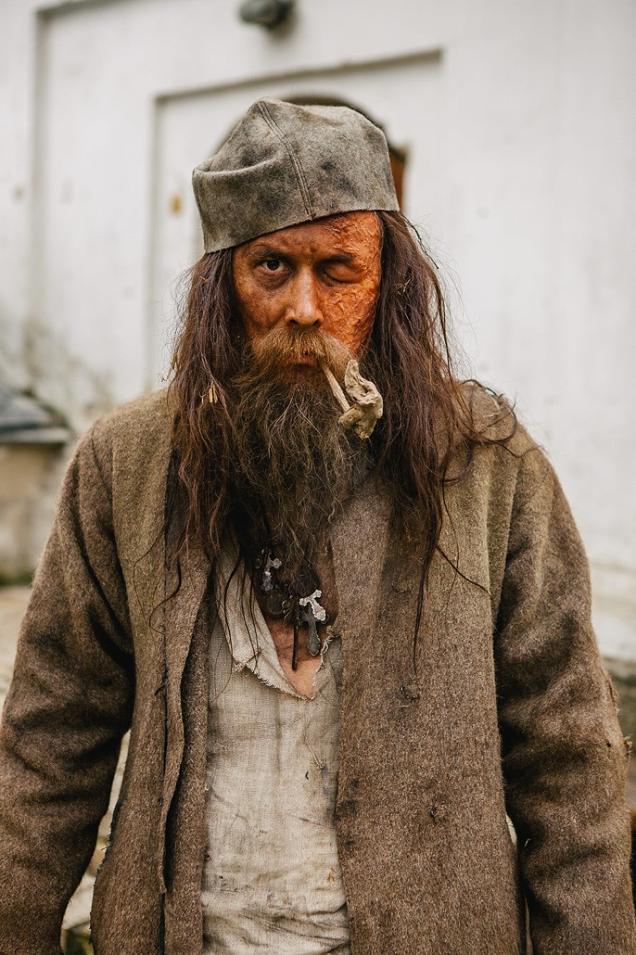По режиссерскому замыслу, в Варфоломея длинные растрепаны волосы, небрежная борода и шрам, закрывающий глаз. Каждый день гримеры более двух часов воссоздавали детали, поэтому кропотливая работа вышла безупречной – в кадре музыкант «постарел» на сорок лет. Отметим, что и актерская игра Бабкина тебя удивит!