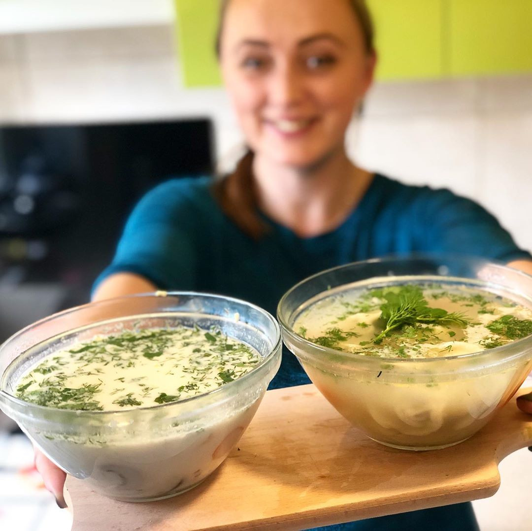 4. Подаем вместе с бульоном, сливочным маслом и зеленью.