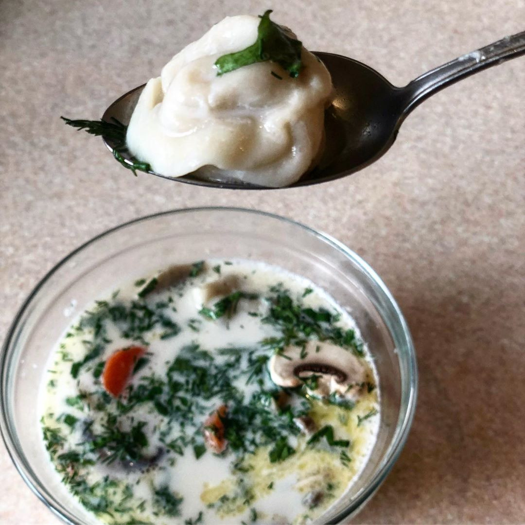 2. Пельмени с шампиньонами, куриным филе и плавленым сыром