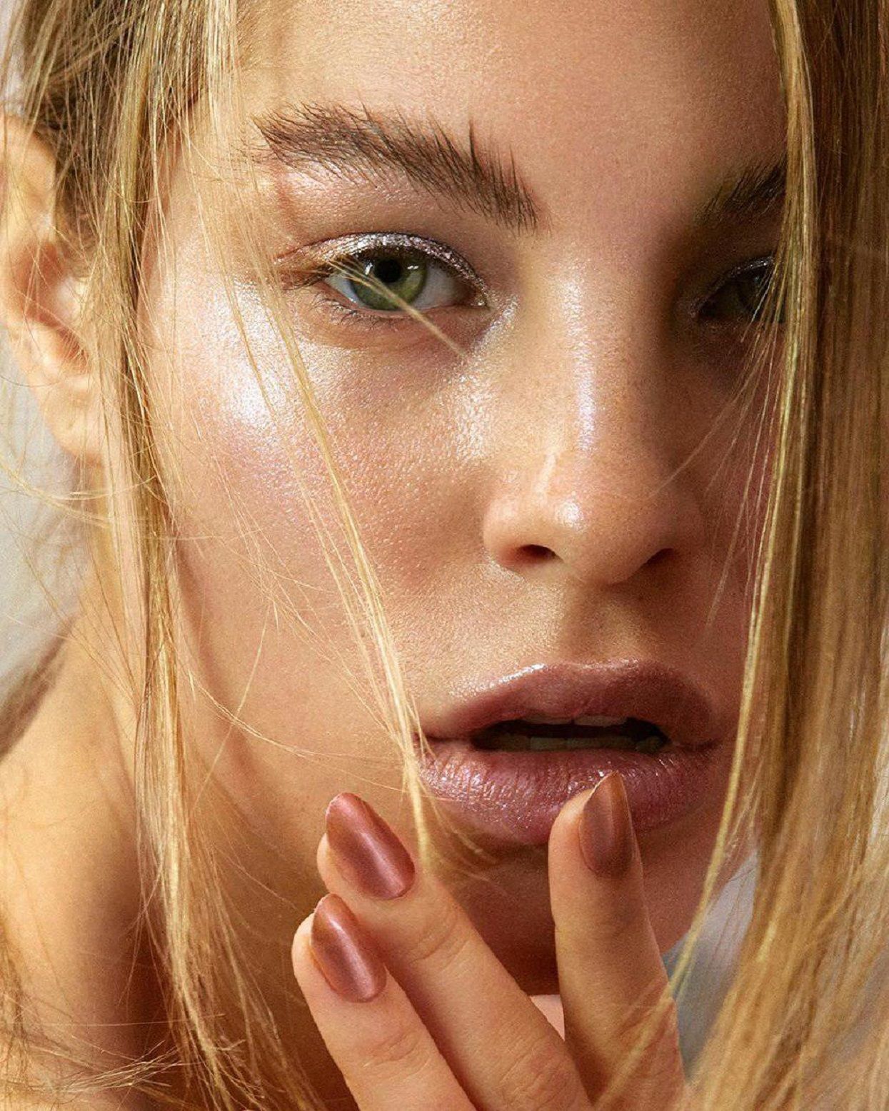 Нанесите праймер с блестящим эффектом. Он прекрасно отражает свет, чем выравнивает тон кожи и придаст ей отдохнувшего вида.