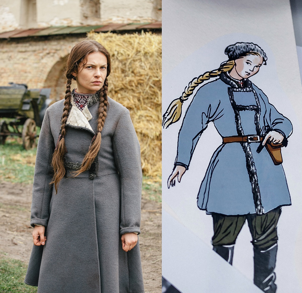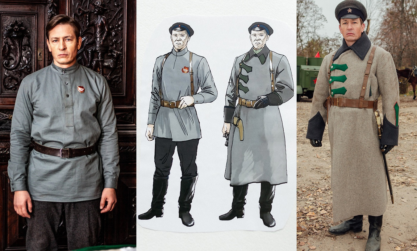 Во время подготовки экранных образов, команда сотрудничала с реконструкторами, которые консультировали и помогали с поиском подходящих тканей. Сложности возникли во время подготовки наряда Евдокимова – главного чекиста в ленте. Это едва ли не единственный герой фильма, который одет не по уставу. Евдокимов (Андрей Мостренко) имеет серую фуражку с отлитой звездой СССР, тогдашнюю серую шинель с зелеными вставками на рукавах, на которых отсутствуют любые знаки воинского звания. Самой сложной задачей оказалось найти подходящую ткань для шинели – серой шерсти нужного оттенка в Украине не нашли, поэтому пришлось заказывать ее в Беларуси.