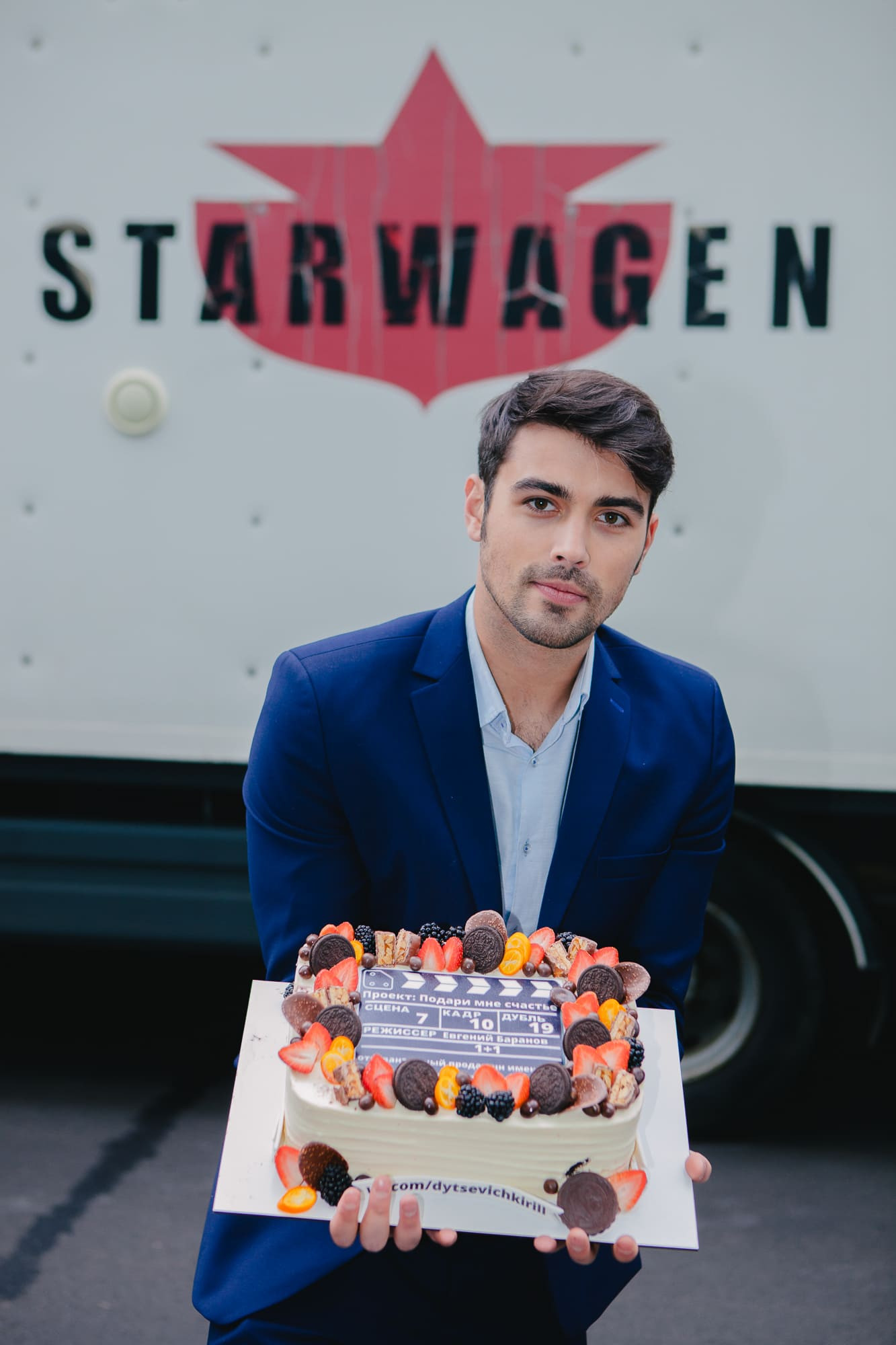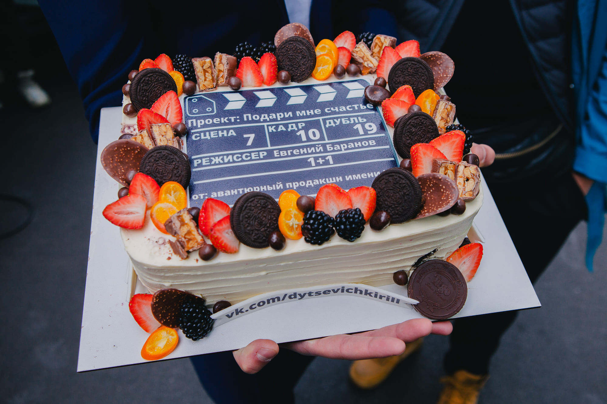 Кондитерское изделие было сделано в виде огромной «киношной» хлопушки со съемок «Подари мне счастье». Актер приятно удивился такому вкусному подарку, буквально потеряв дар речи. Он поблагодарил своих сторонников за сюрприз и поделился эмоциями в социальных сетях.