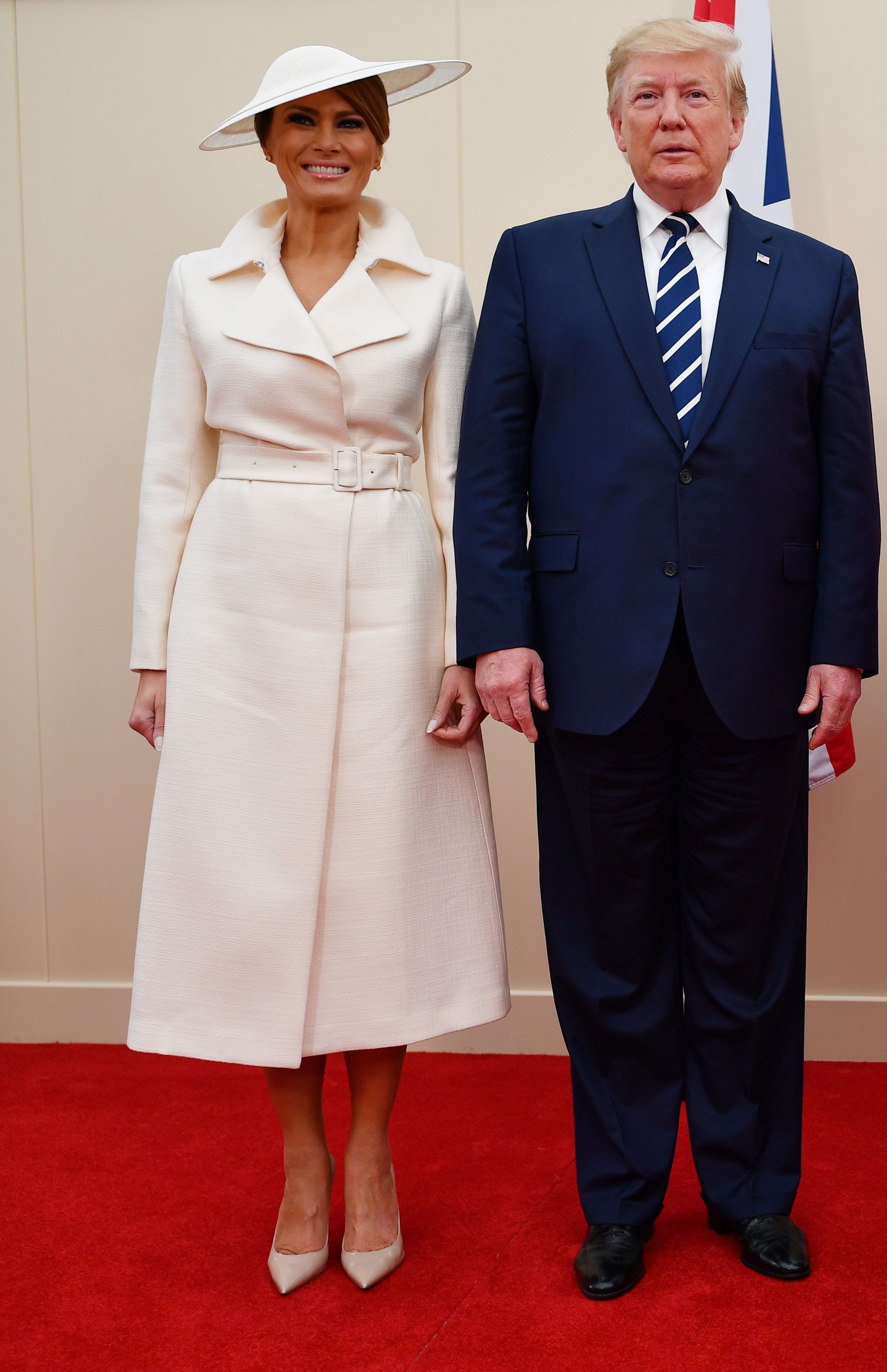 Похожие образы часто демонстрирует первая леди другой страны — США. Мелания Трамп неоднократно появлялась на официальных мероприятиях в элегантных платьях аналогичного фасона самых разнообразных расцветок. Среди них можно вспомнить и total white со шляпкой.