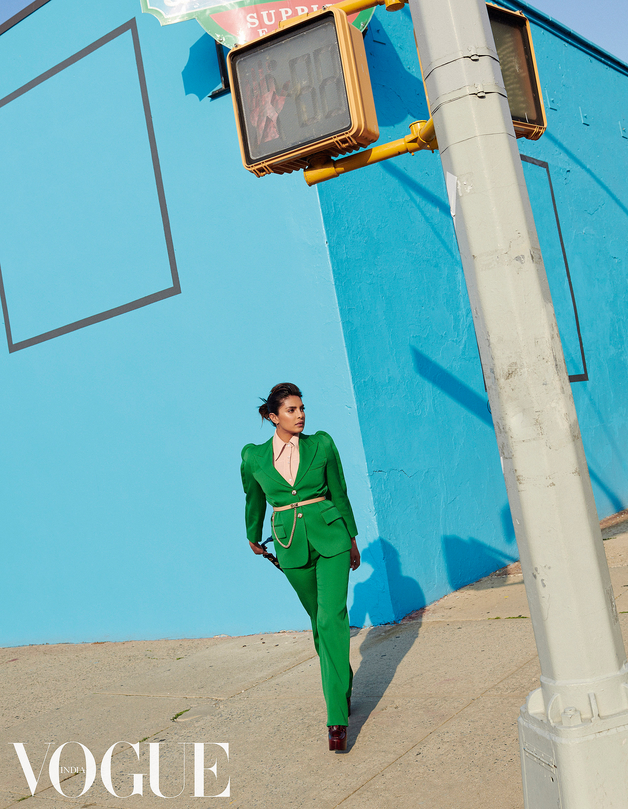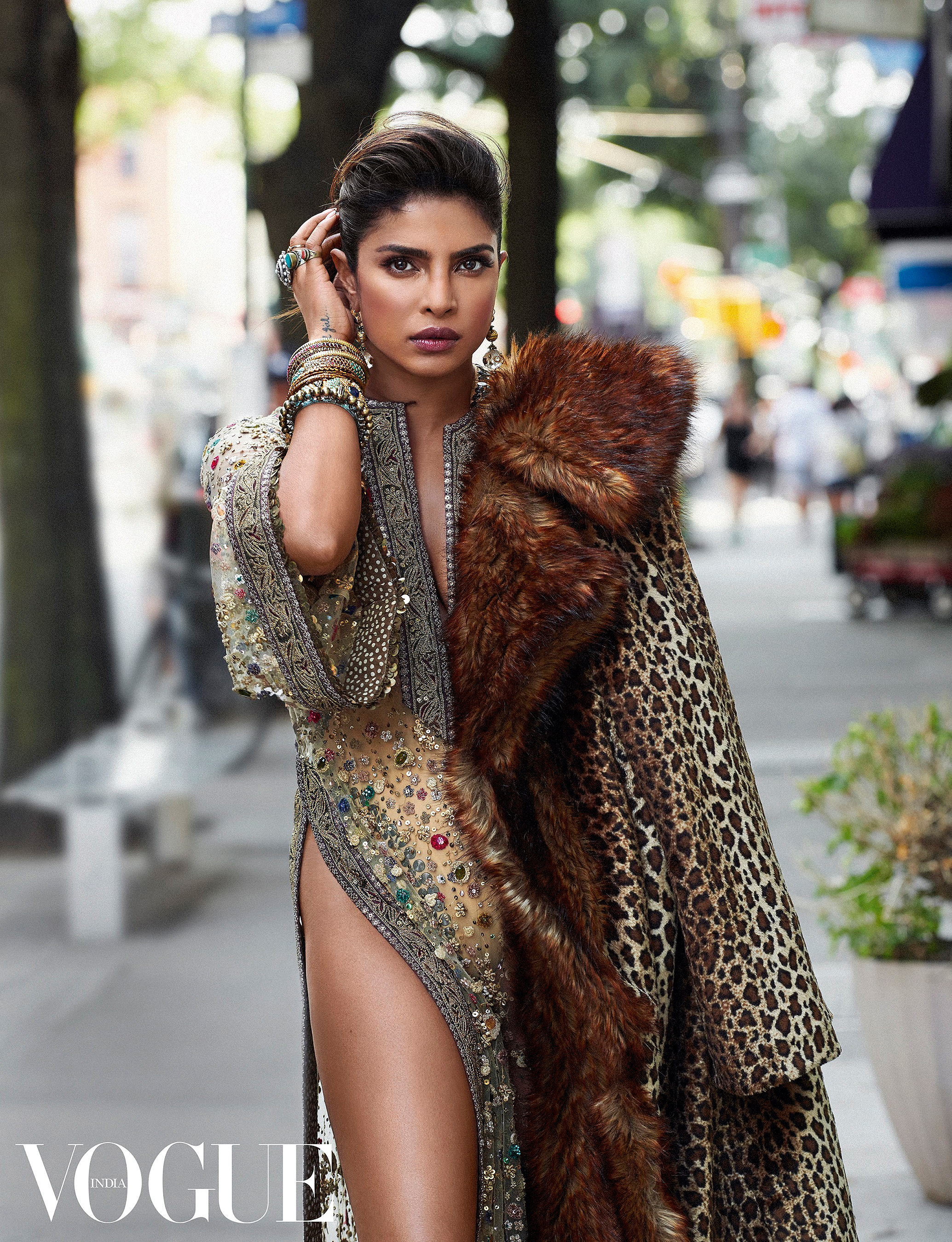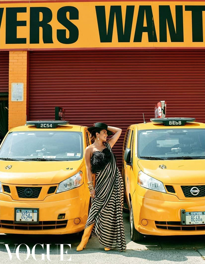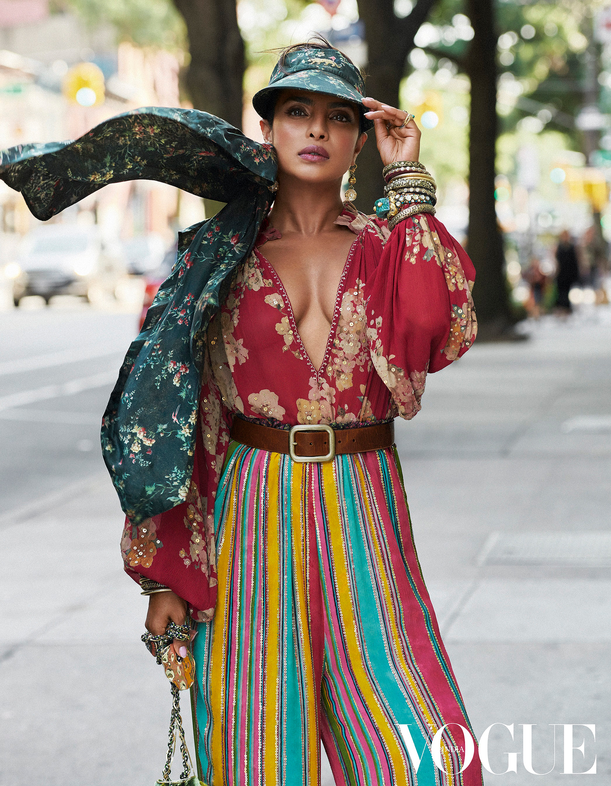 Знаменитость примерила несколько нарядов — трендовых и пикантных. На обложке Приянка позирует в полупрозрачной пудровой блузке и легких брюках с цветочным принтом, декорированным стразами. Образ завершают пушистый розовый клатч и большое количество драгоценных украшений от индийского бренда Sabyasachi.