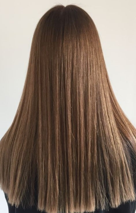 Выпрямленные волосы. Ничего лишнего, но трендово и аккуратно.