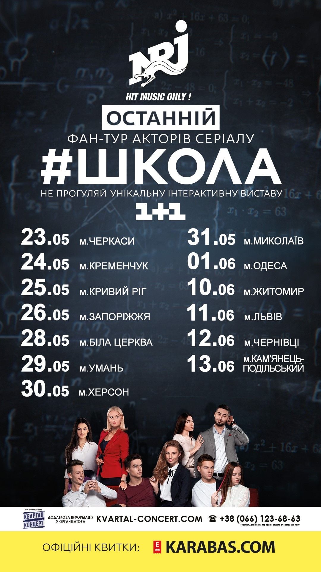 По многочисленным просьбам фан-тур сериала Школа городами Украины продлится до начала лета! Все, кто еще не успел увидеть любимых актеров, получат возможность посетить уникальный интерактивный спектакль со звездами сериала и выбрать победителя в соревновании 11-А и 10-Б классов и их классных руководителей.